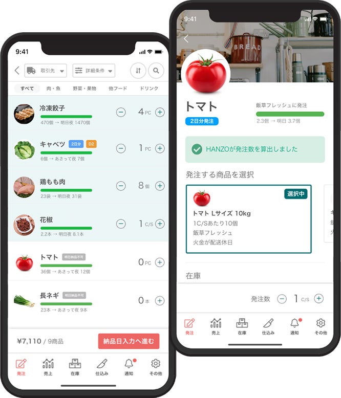 2020年10月より、飲食店で使用する食材を自動で発注するクラウドサービス「HANZO 自動発注」を開始しました。現在では「肉汁餃子のダンダダン」、「牛たん とろろ 麦めし ねぎし」、「福しん」など多数の飲食チェーン店で導入いただいています。1店舗あたり最大12.5時間の発注業務削減に成功するなど、飲食店の業務効率化で、食品ロスや人材不足などの店舗運営の課題に貢献しています。