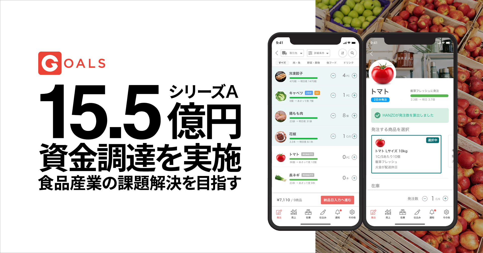 DXで食品産業の課題解決を目指すGoals、シリーズAで総額15.5億円の資金調達を実施