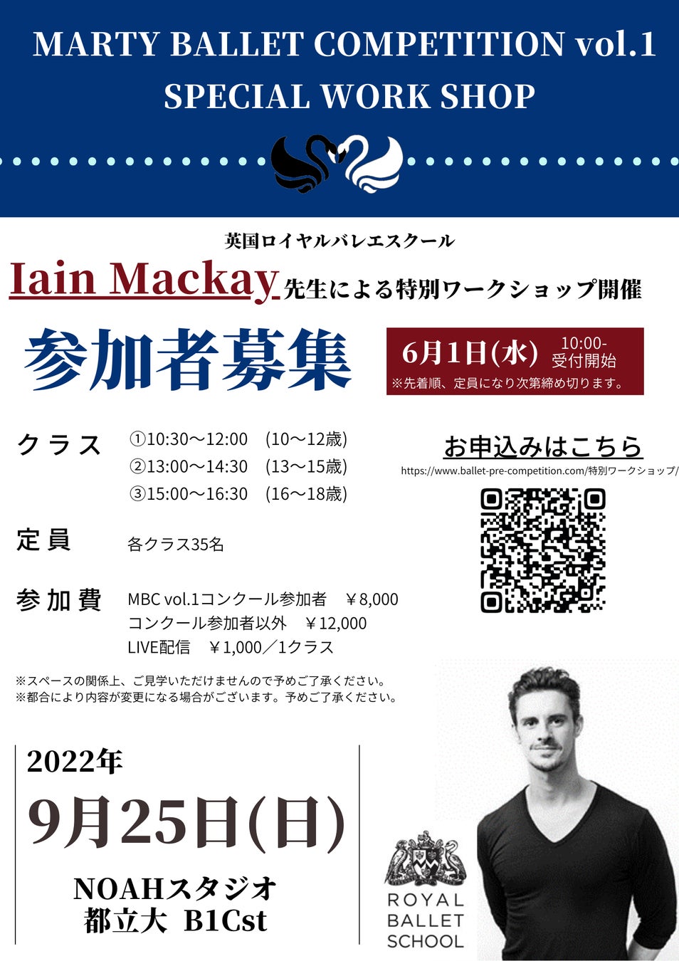 特別ワークショップ前日に開催いたしますマーティバレエコンクール vol.1 in埼玉・大宮は只今絶賛エントリー受付中!マッケイ氏をはじめ、バレエ界でご活躍中の審査員の先生方がジャッジいたします。