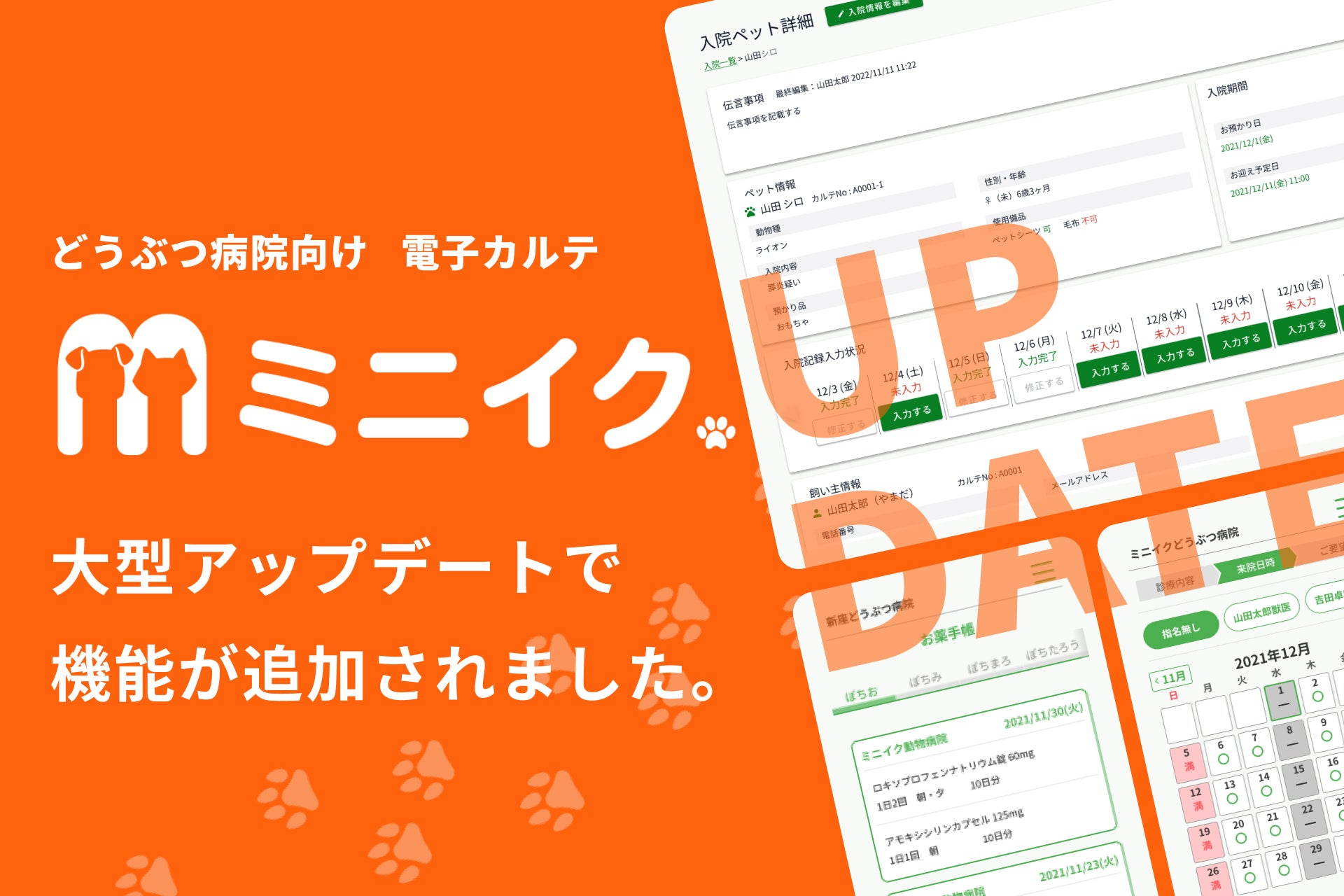 【大型アップデート】動物病院向けオールインワン電子カルテ「ミニイク」が、ついにオンライン予約&入院管理機能をリリース!