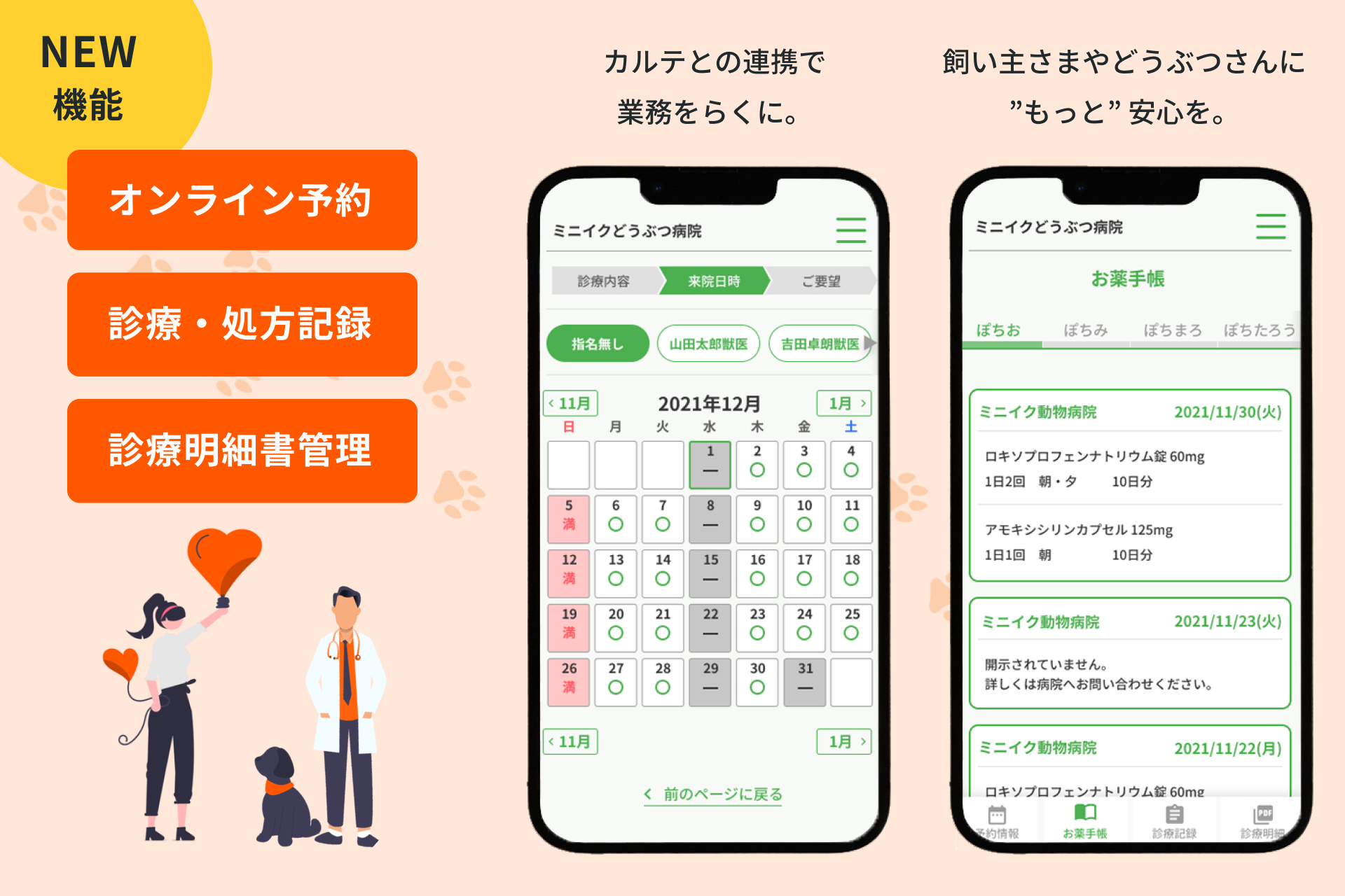 - 「オンライン予約」機能、カルテとの連動で業務を「らく」に!飼い主様に安心を
