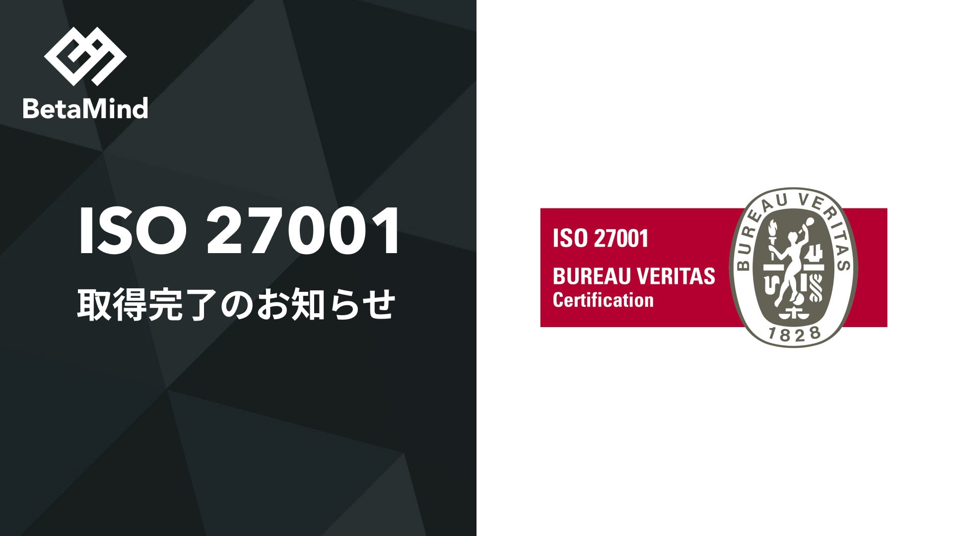 株式会社BetaMind(本社:東京都渋谷区、代表取締役:吉田健人)は、情報セキュリティマネジメントシステム(以下「ISMS」)の国際規格である「ISO27001」認証を取得したことをお知らせいたします。