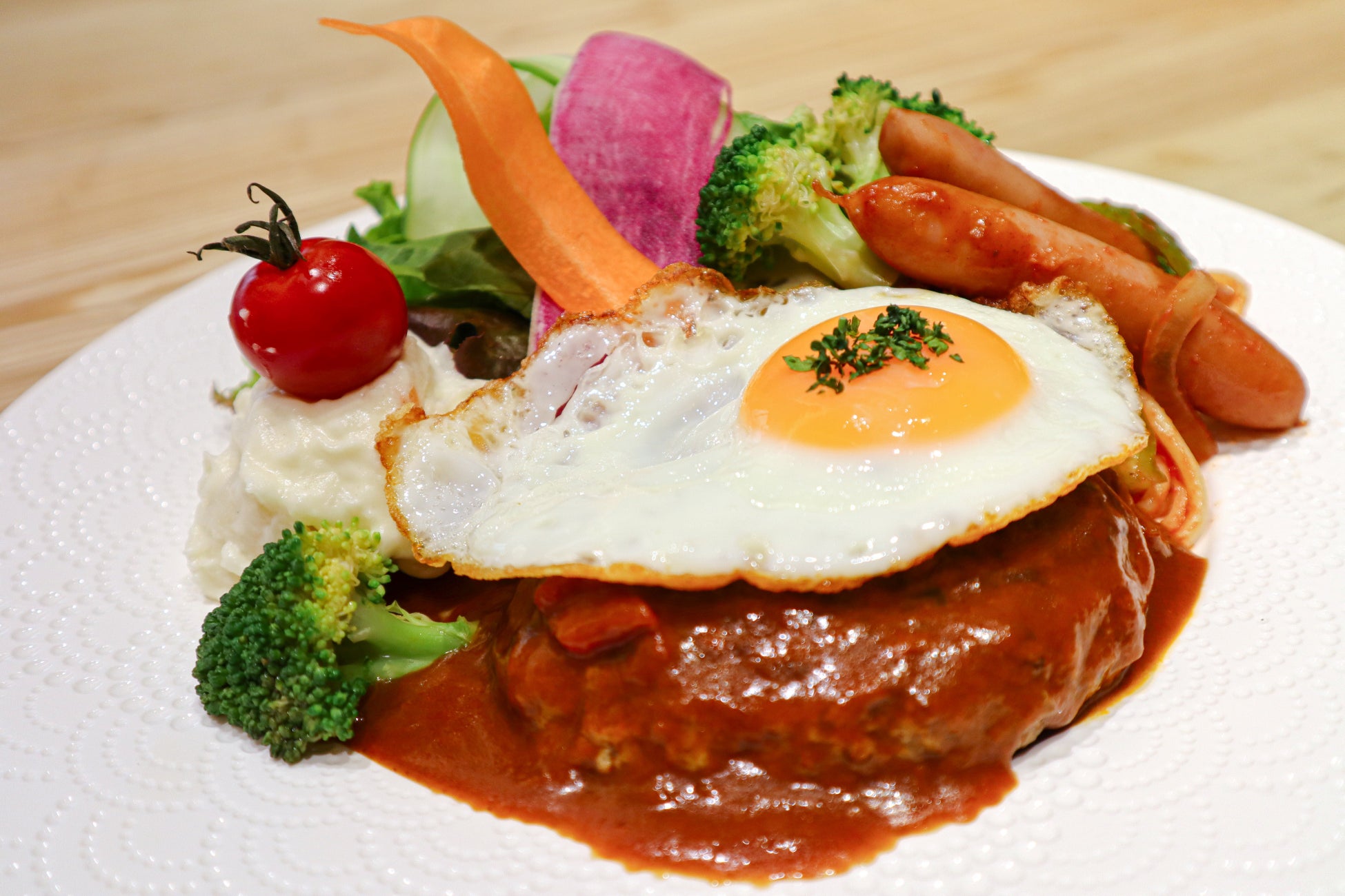 子どもたちに人気のハンバーグやウィンナーをはじめとしたメインプレートのサイドには、高槻産の野菜を多く取り入れたサラダを添え、高槻産ヒノヒカリを使用した炊き立てご飯、お好みのドリンクでお腹いっぱいになった後は宴会場でイベントや映画鑑賞を楽しんでいただいています。