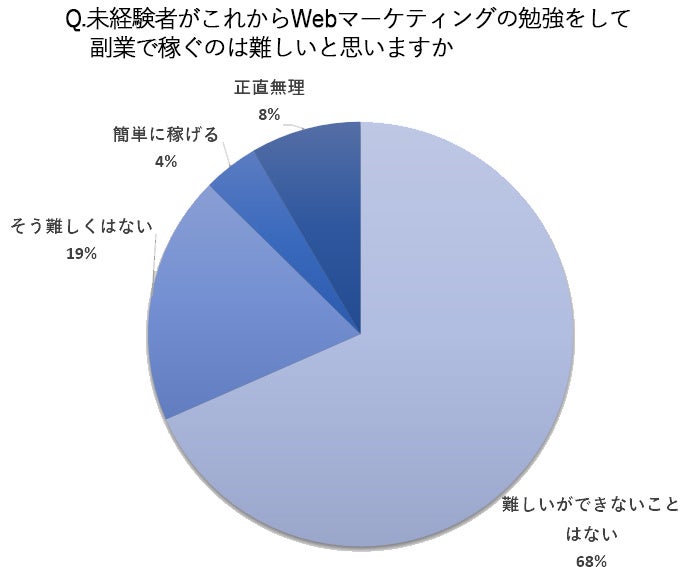 Webマーケティング未経験者が副業で稼ぐのは難しいかの質問には、9割以上が肯定的な回答