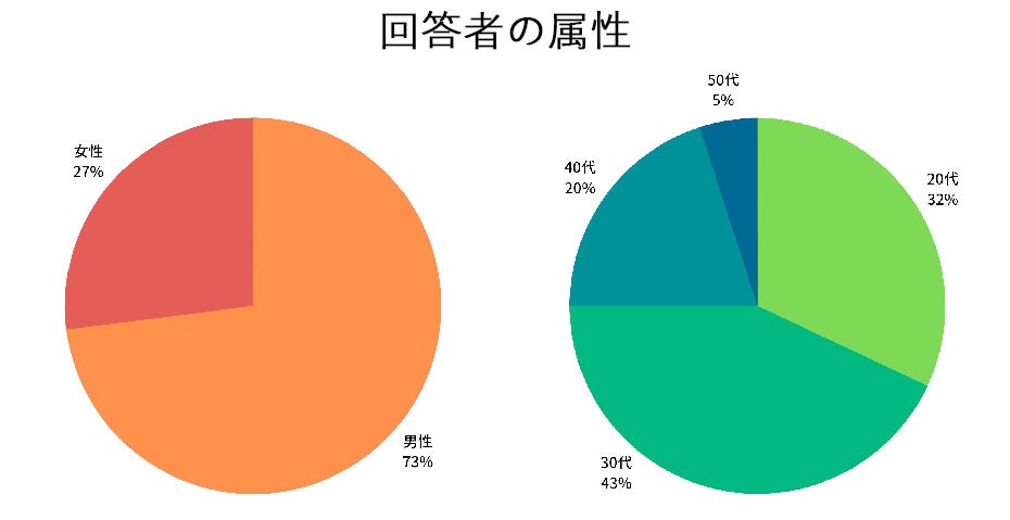 20代:32人(32%)、30代:44人(43%)、40代:21人(20%)、50代:5人(5%)