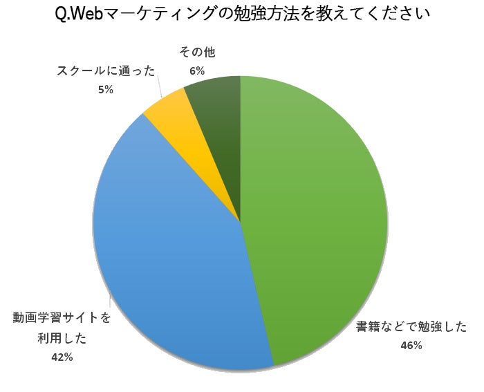 「書籍などで勉強した」が46%、「動画学習サイトを利用した」が42%、「スクールに通った」が5%という結果になりました。