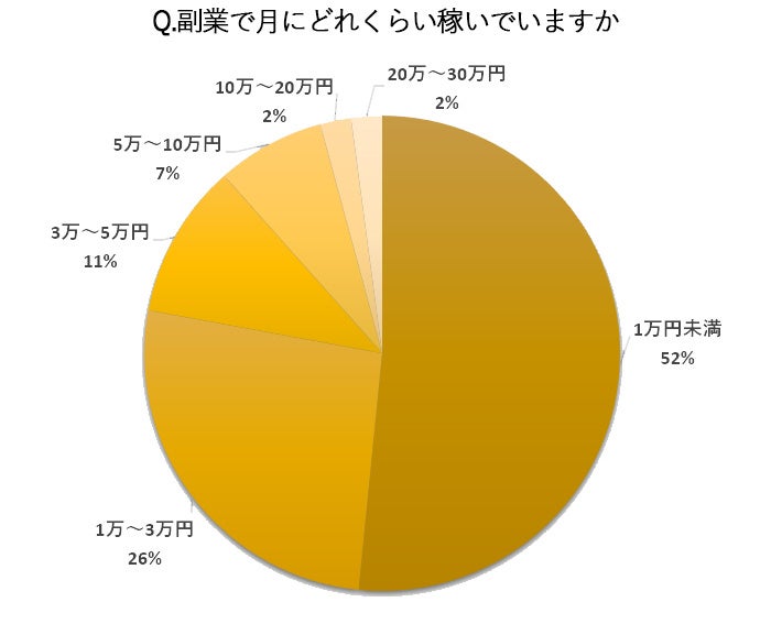 「1万円未満」と回答した人が52%で最多となり、「1万~10万円」は44%、10万円以上稼いでいる人は4%となりました。
