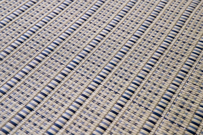 ●ブルー:染めていないナチュラルない草と濃淡のあるブルーのい草で織り上げた爽やかな一枚です。