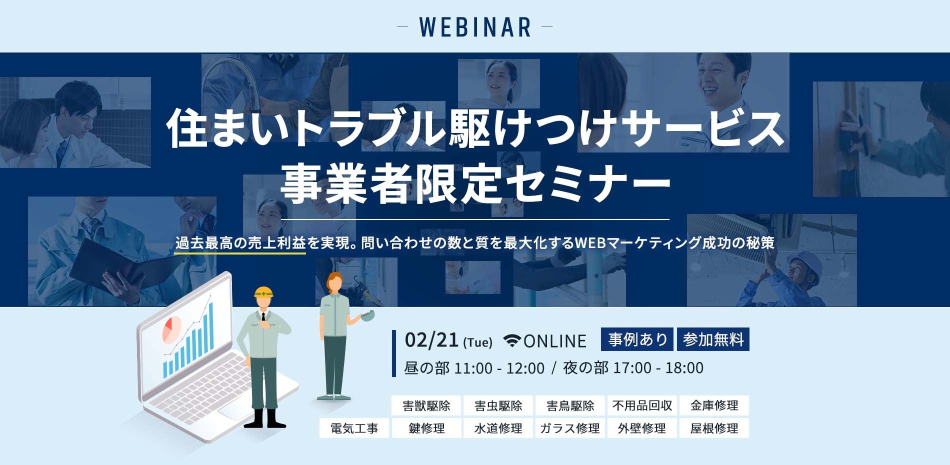 【2/21開催】平均1か月で収益化!住まいトラブル駆けつけサービスにおけるWEB集客戦略セミナー / 0から始める広告集客セミナーのご案内
