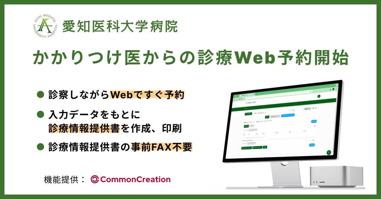 コモン・クリエーション株式会社(本社:福岡県福岡市、CEO:牟田 和貴)が提供する予約システム「Med-Well」において、かかりつけ医などの医療機関がWeb上で診療の紹介予約を行える「診療Web予約機能」を実装しました。