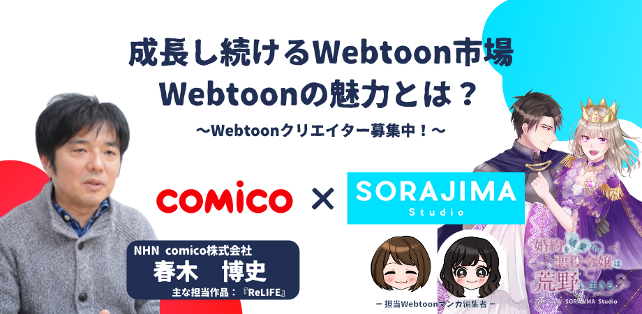 公開一週間でランキング1位を獲得した『婚約を破棄された悪役令嬢は荒野に生きる。』はアメリカでもデイリーランキング1位にランクインするなど国内外でヒットしております。 今回はエピソード50話公開を記念して、マンガプラットフォームcomico様とコラボしウェビナーを開催致します。