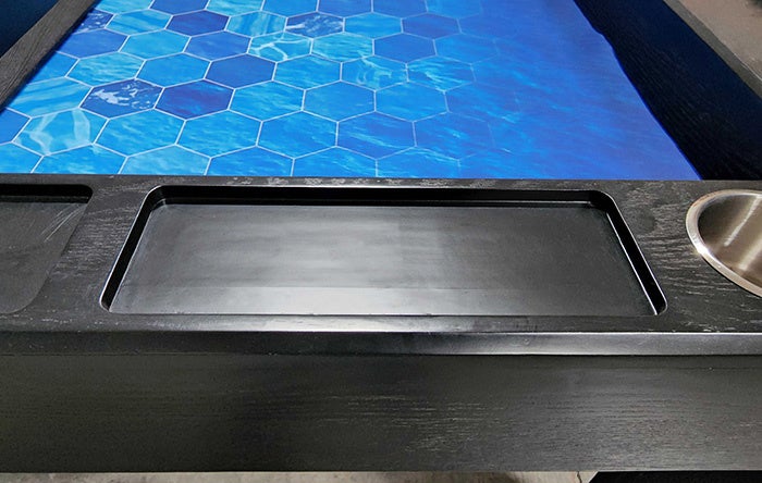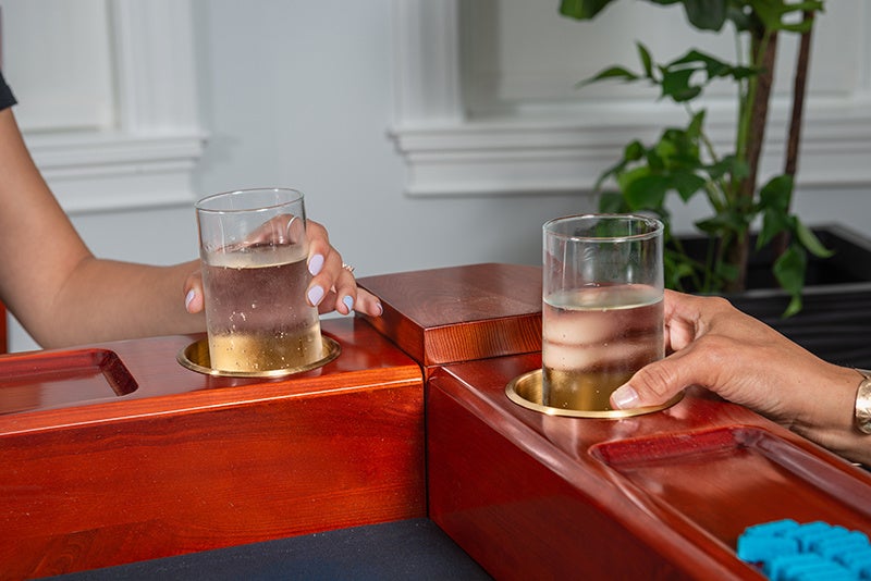通常のテーブルでは飲み物が溢れてしまう心配がありますが、The Originsでは問題ありません!