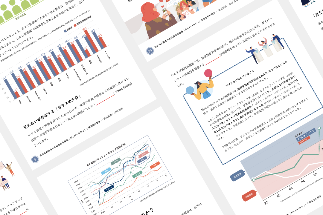 女性の役員が少ないのはなぜ?ジェンダー、障がい、人種、学歴… 人々の違いと分断がどのように社会に表れているか、知っていますか?多様性の基礎と最近社会で起きている運動を学び、職場や社会での偏見をなくしていく道筋が分かります。