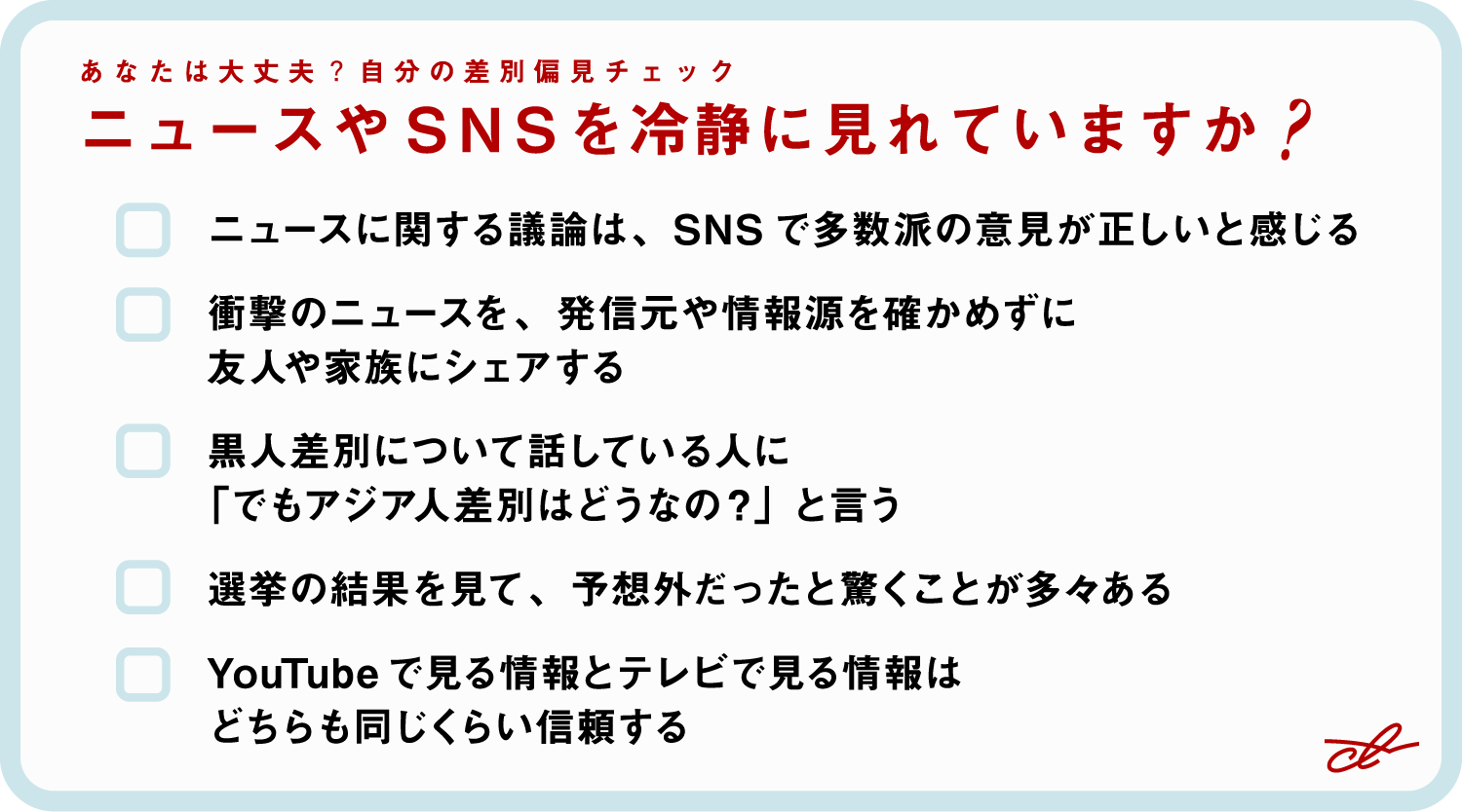 「知らなかった」ではいられない、フェイクニュース拡散の防衛策や、日々気づかずにしてしまう差別的な言動を避けるための知識が、より一層求められる時代ではないでしょうか。
