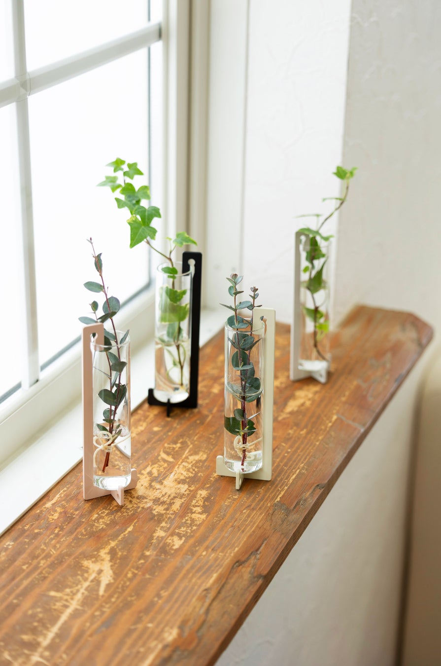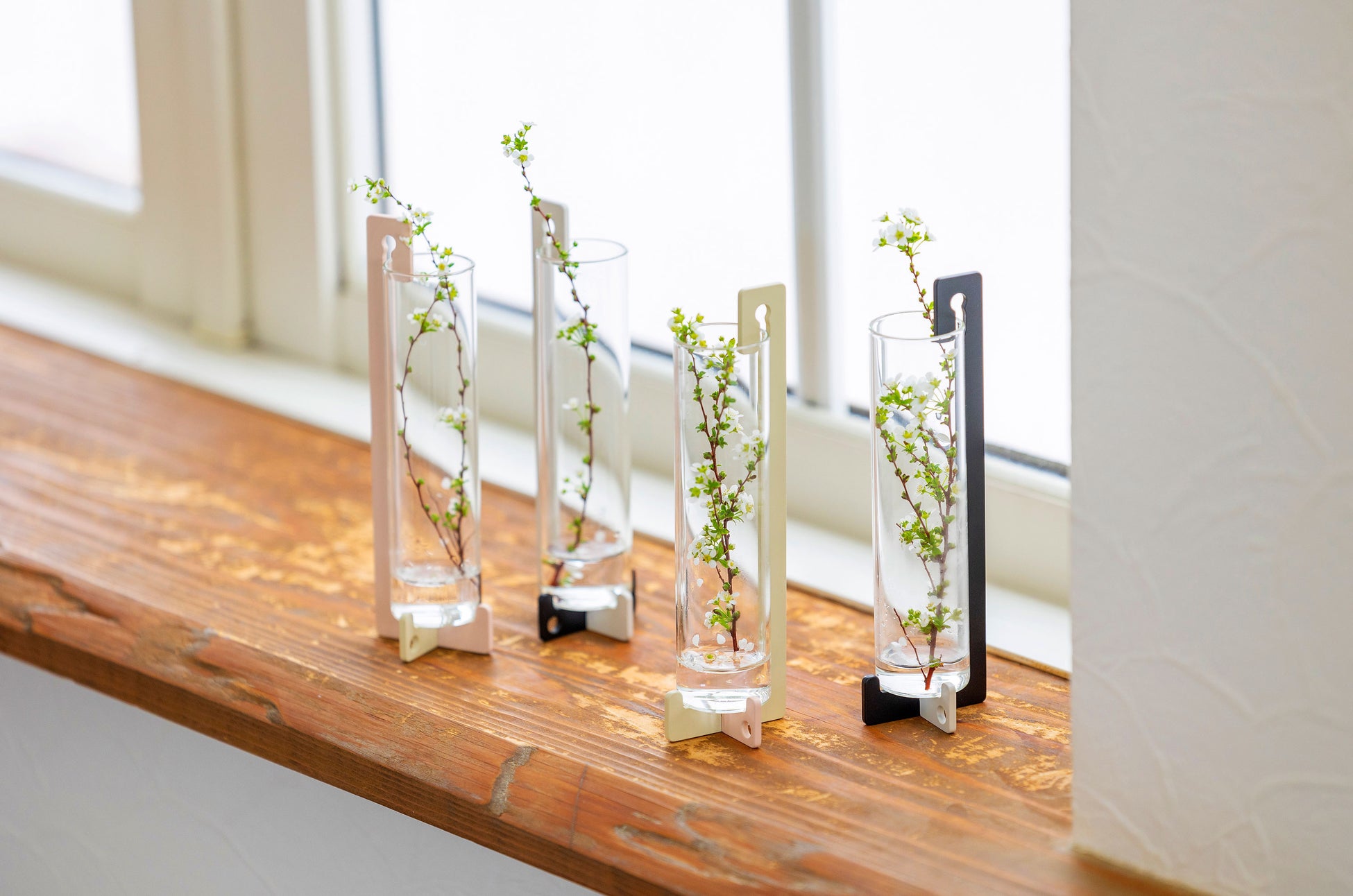 好評の Flower vase に新しい仲間が誕生。本体にスチールを使用したフラワーベースです。ガラス容器を遮る部分がないため、花の美しさを最大限に楽しめます。