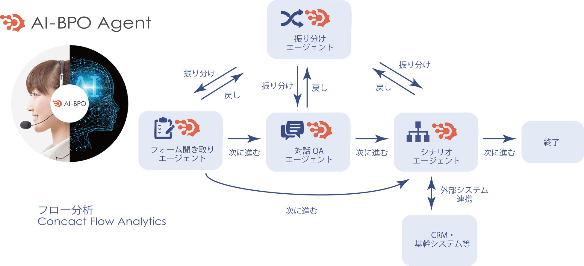 AI-BPO Agentでは、複数のエージェントが協調して動作することで、一つのエージェントでは難しかった高度な対応を可能にします。ここでは、AI-BPO Agentを構成するエージェントを紹介します。