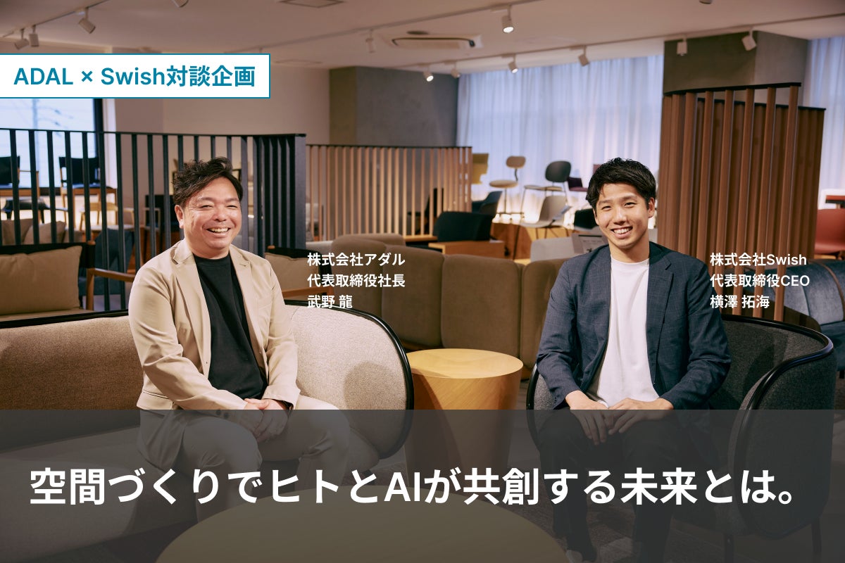 「空間づくりの常識をアップデートする。」をミッションに掲げる株式会社Swish(本社:東京都品川区、代表取締役CEO:横澤 拓海)は、株式会社アダル代表取締役社長・武野 龍氏とのスペシャル対談企画 後篇「空間づくりでヒトとAIが共創する未来とは。」を公開したことをお知らせします。