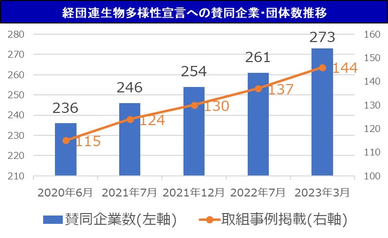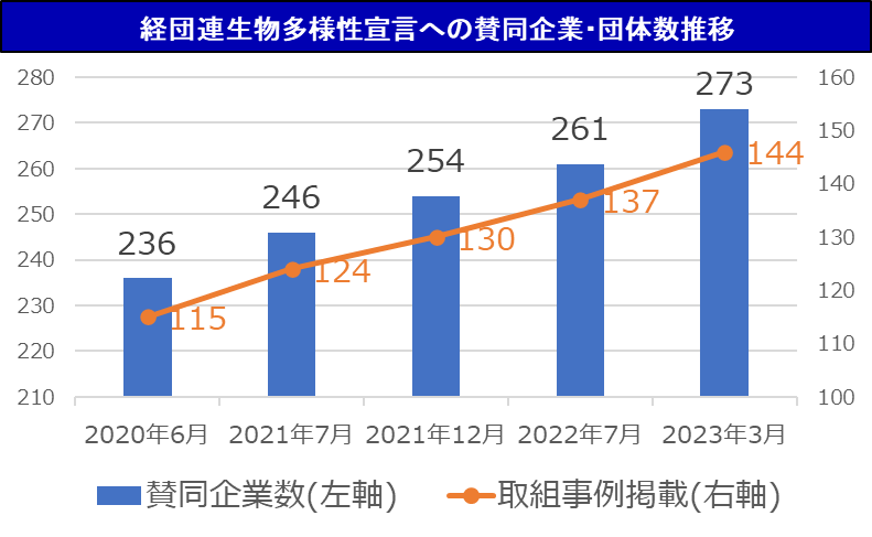経団連生物多様性宣言イニシアチブへの参加数が年々増加し、273企業・団体に!