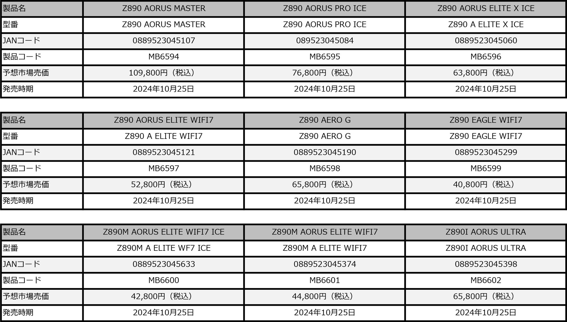 株式会社ニューエックス(本社:東京都千代田区)は、取り扱いメーカーGIGABYTE社より最新のIntel® Core™ Ultraプロセッサーに対応したZ890チップセット搭載マザーボード「GIGABYTE Z890 AORUS MASTER」、「GIGABYTE Z890 AORUS PRO ICE」、「GIGABYTE Z890 AORUS ELITE X ICE」、「GIGABYTE Z890 AORUS ELITE WIFI7」、「GIGABYTE Z890 AERO G」、「GIGABYTE Z890 EAGLE WIFI7」、「GIGABYTE Z890M AORUS ELITE WF7 ICE」、「GIGABYTE Z890M AORUS ELITE WIFI7」、「GIGABYTE Z890I AORUS ULTRA」シリーズ計9製品を2024年10月25日(金)より順次発売いたします。