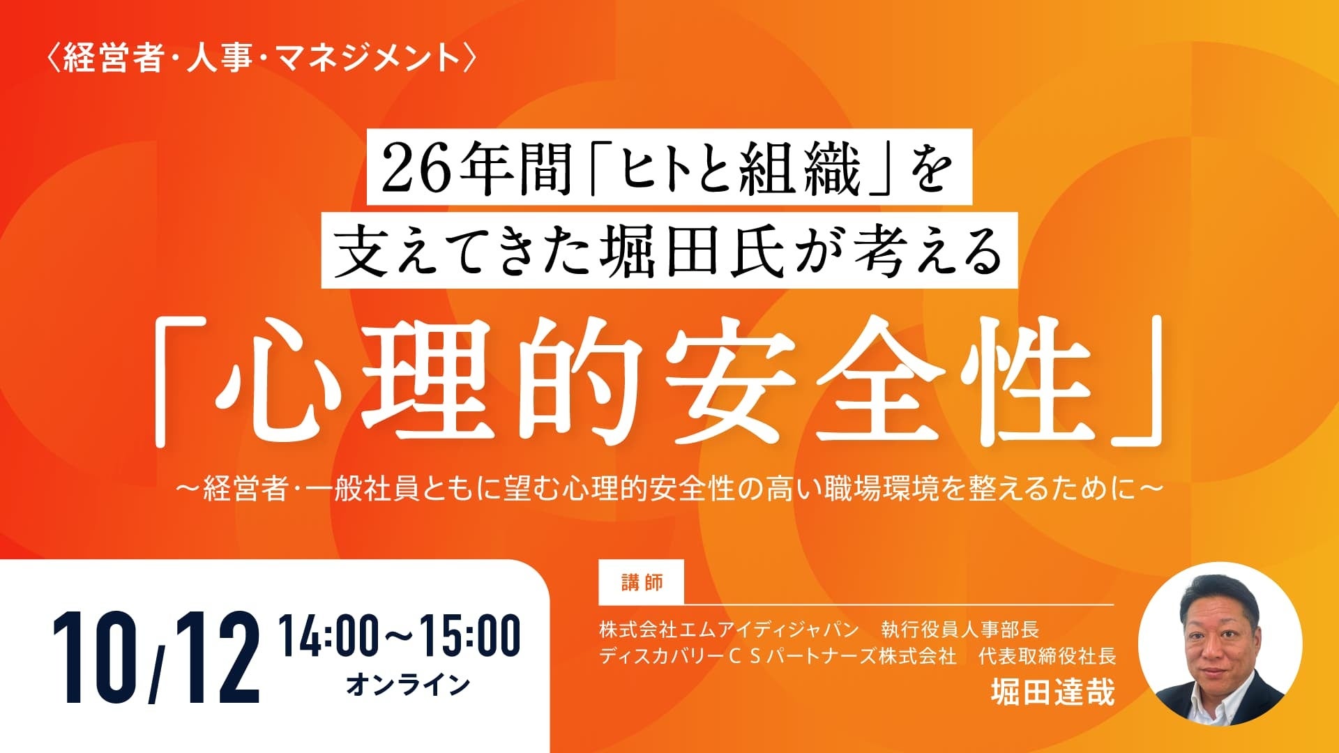 - <心理的安全性 無料オンラインセミナー>10月12日(水)14:00~15:00開催