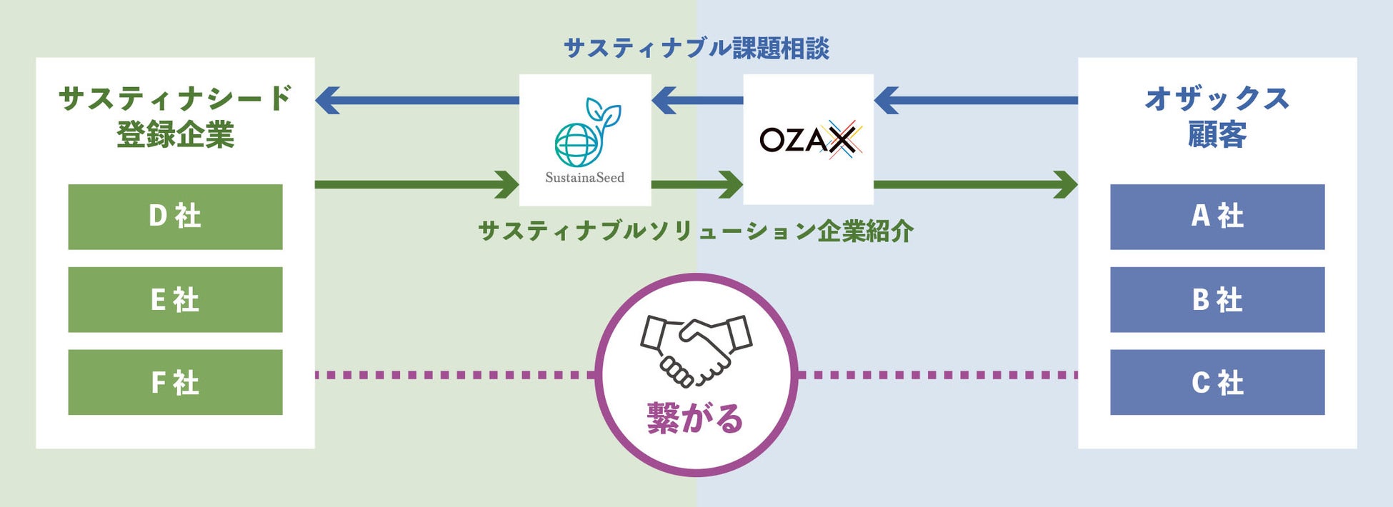 サスティナビリティ向上プラットフォームを運営するスタートアップ、サスティナシード株式会社 (所在地:東京都中央区、代表取締役CEO:中畑裕子) と、創業113年商社、オザックス株式会社(所在地:東京都千代田区、代表取締役会長兼社長:尾﨑豊弘)は、企業のサスティナブル活動支援を目的とした業務提携契約を締結いたしました。