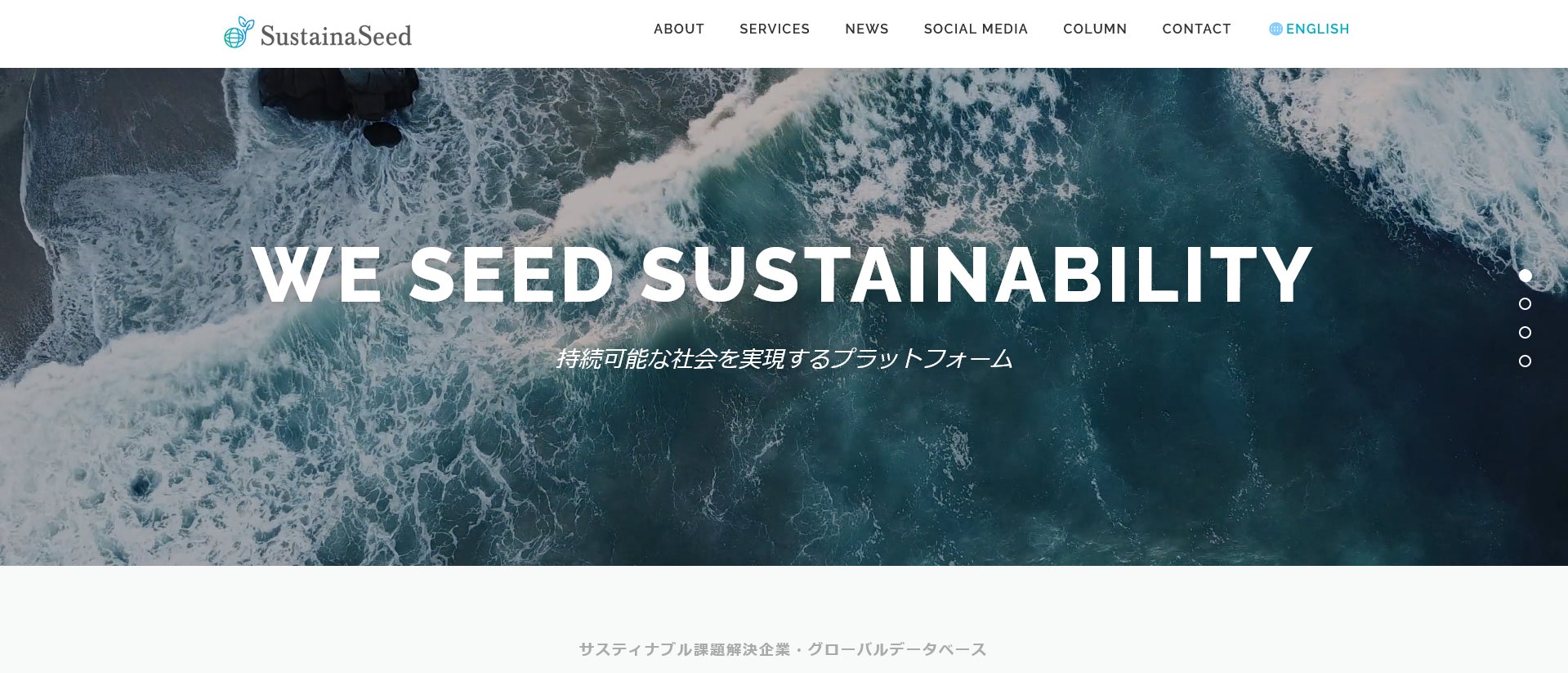 シードステージ最初のプロダクトとして2022年春にサスティナビリティに特化した購買・寄付型のクラウドファンディングプラットフォームβ版をリリースし、2022年8月にSDGsに取り組む企業の為の求人サイト、SDGs Jobs β版をリリースしています。また、現在はサスティナブル課題解決製品やサービスを持つ企業のグローバルビジネスディレクトリのα版(英語)を公開中。その他のサービスとして、多岐に渡るサスティナブル関連の専門家による講演や、サスティナブルビジネス戦略のアドバイザリーサービスも行っています。