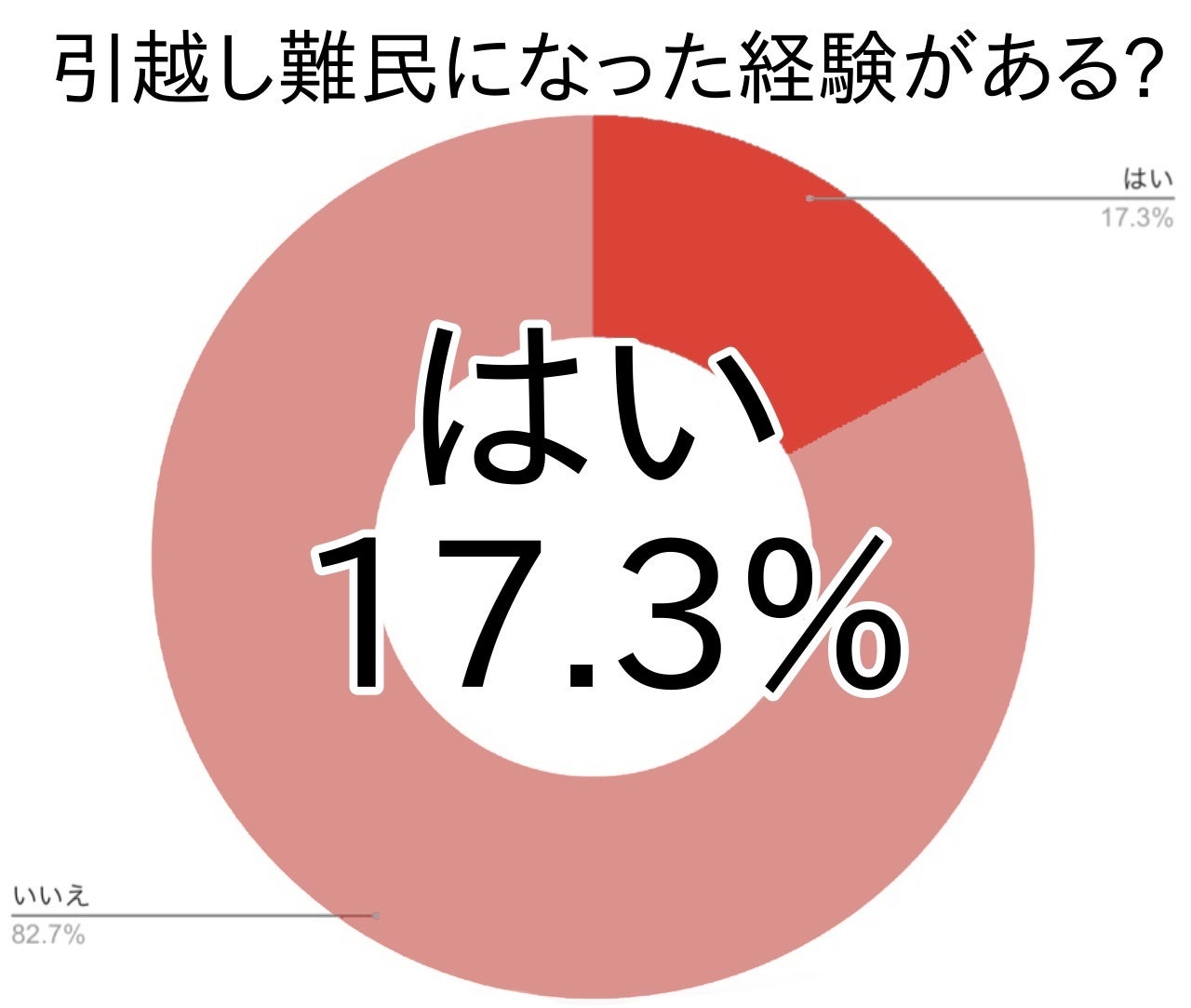 今回の調査では、スムーズに引越しできた人は82.7%はいるものの、「引越し難民」を経験した人は17.3%もいました。2割弱、5〜6人に1人という割合は、他人事ではなく誰にでも起こり得るものだと言えるでしょう。