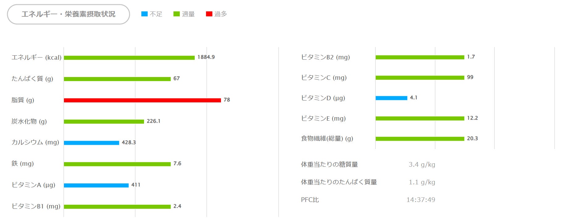 図:至学館大学栄養サポートプロジェクト(NSP)による栄養価計算例