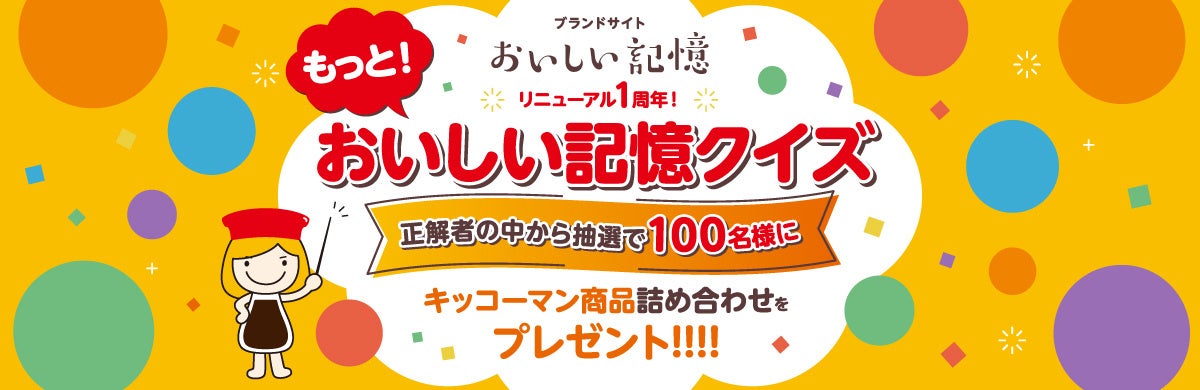 全問正解者の中から抽選で100名様に「キッコーマン商品詰め合わせ」をプレゼント!ブランドサイトリニューアル1周年を記念した〝もっと!「おいしい記憶クイズキャンペーン」〟がスタート。