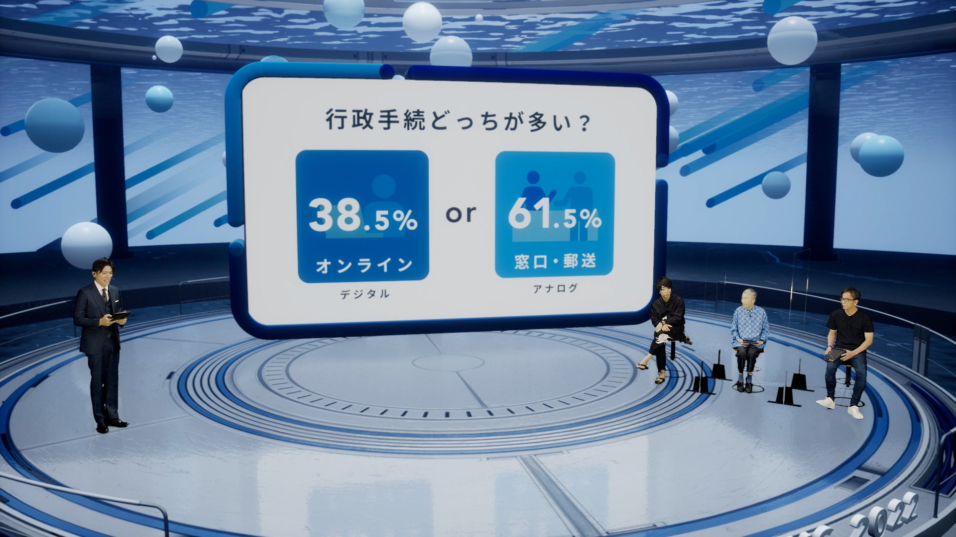河野太郎デジタル大臣(以下、河野大臣)がデジタルアバター姿で登場。「社会全体でデジタルについて体験し、デジタル化への機運を高めるための大切な機会。少しでも多くの皆様にデジタルにふれていただけたら。」と開会挨拶を行いました。イベントでは、河野大臣がデジタル領域の次世代人材である、石山アンジュ氏・立崎乃衣氏・森谷頼安氏・渡辺創太氏と対談。「どうなる!?日本のデジタル社会」をテーマに、「もし私がデジタル大臣だったら」などこれからのデジタル社会像に関する意見交換を行いました。また、落合陽一氏・若宮正子氏らとともに社会と行政のデジタル化進行度を測る「デジタル度」調査の結果発表や、自治体や企業等の「デジタルのゲンバ」紹介などを通じて、デジタルで変化を遂げる日本社会の最前線をお届けしました。また、「good digital award 2022(※1)」表彰式には、「ソーシャルインパクト審査員特別賞」を受賞した、“ボーカロイド(※2)”やデジタルプラットフォームを活用した楽曲で社会全体にインパクトを与え続けている歌い手Ado氏がビデオメッセージで出演。「大変光栄な限り。これからもたくさんの方々に歌を届けていきたい。」と喜びの声を寄せました。