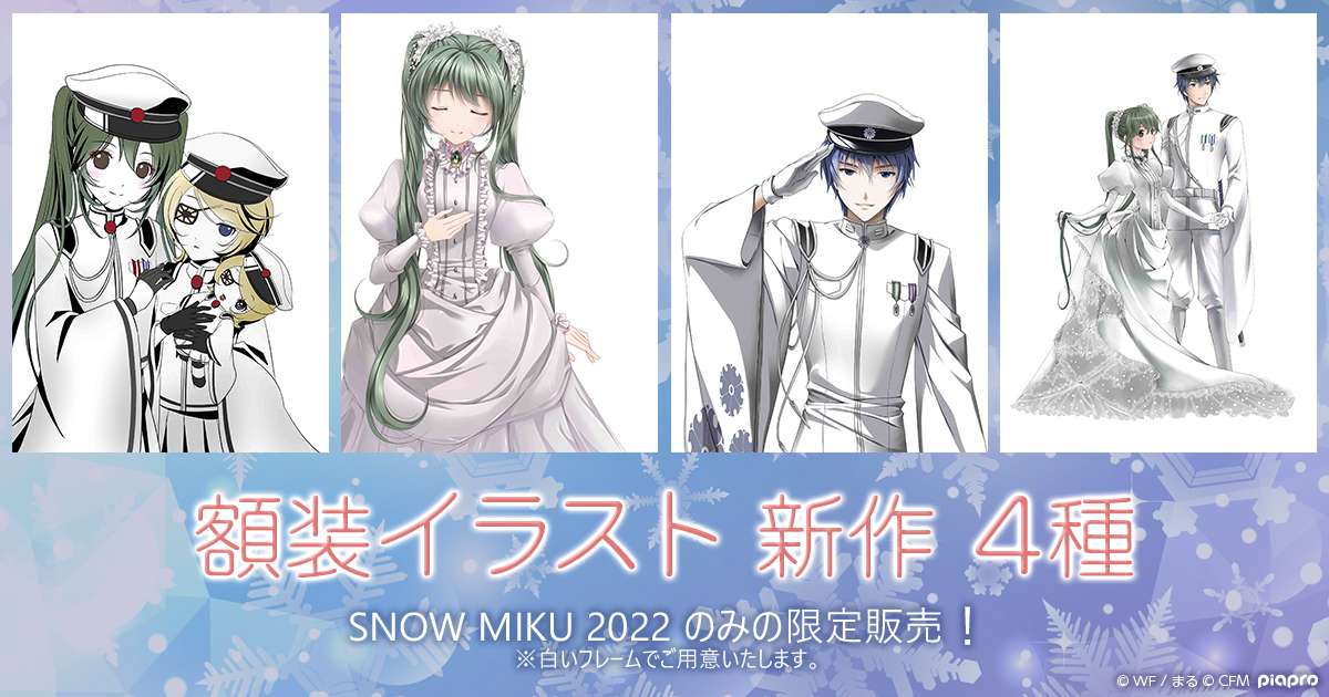 さらに千本桜10周年の新作グッズとして、[額装イラスト 4種]を『SNOW MIKU 2022』のみの限定で販売いたします!白の衣装イラストに合うよう、白いフレームを使用した限定商品となります。