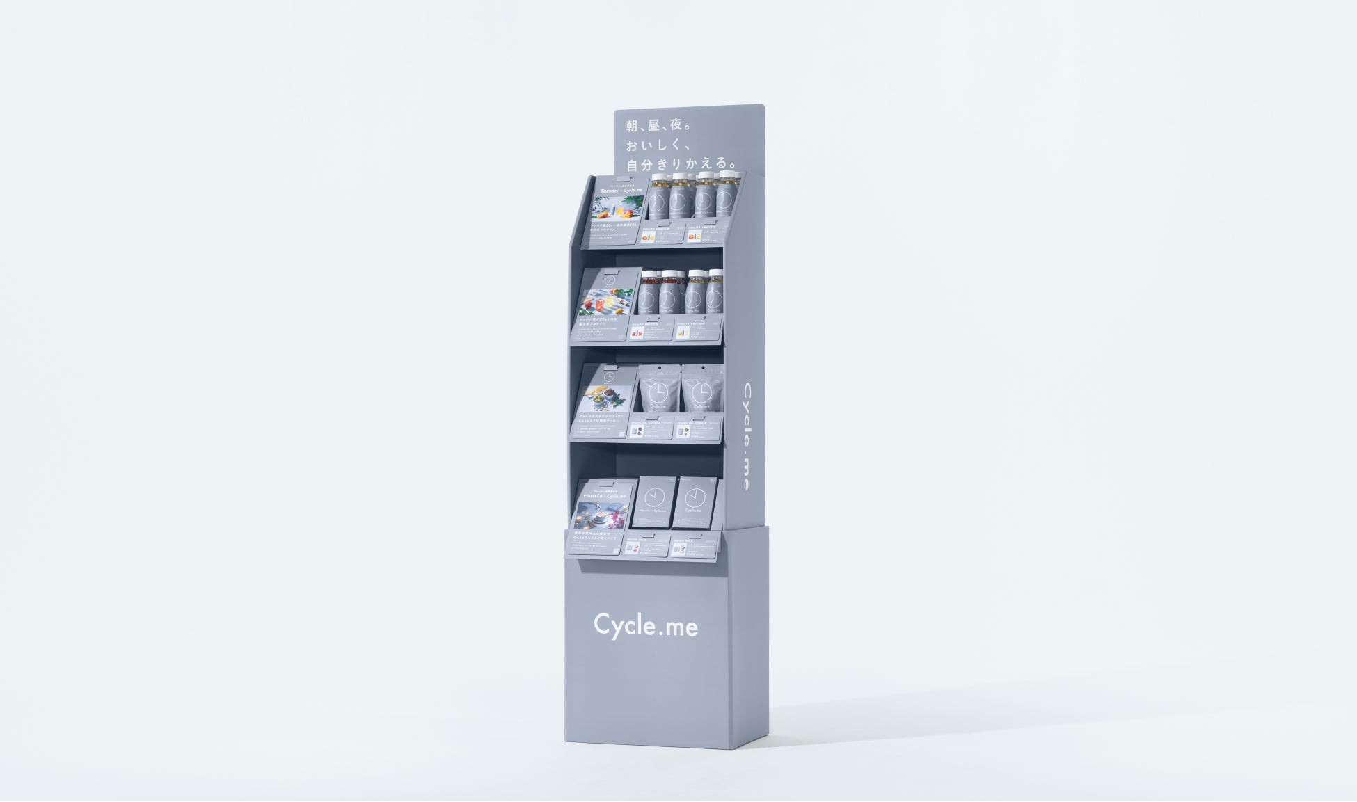 サイクルミーは、三井物産発の会社「.me」(ドットミー)がお届けするウェルビーイングブランドです。「⾃然にきりかえる⽣活」をコンセプトに、充実した毎⽇のサイクルの実現をサポートする、朝・昼・夜の時間帯に合わせた3つの商品を展開しております。オンだけ、オフだけに着目するのではなく、オンとオフのバランスのよいサイクルを作り出すことを⽬指しています。