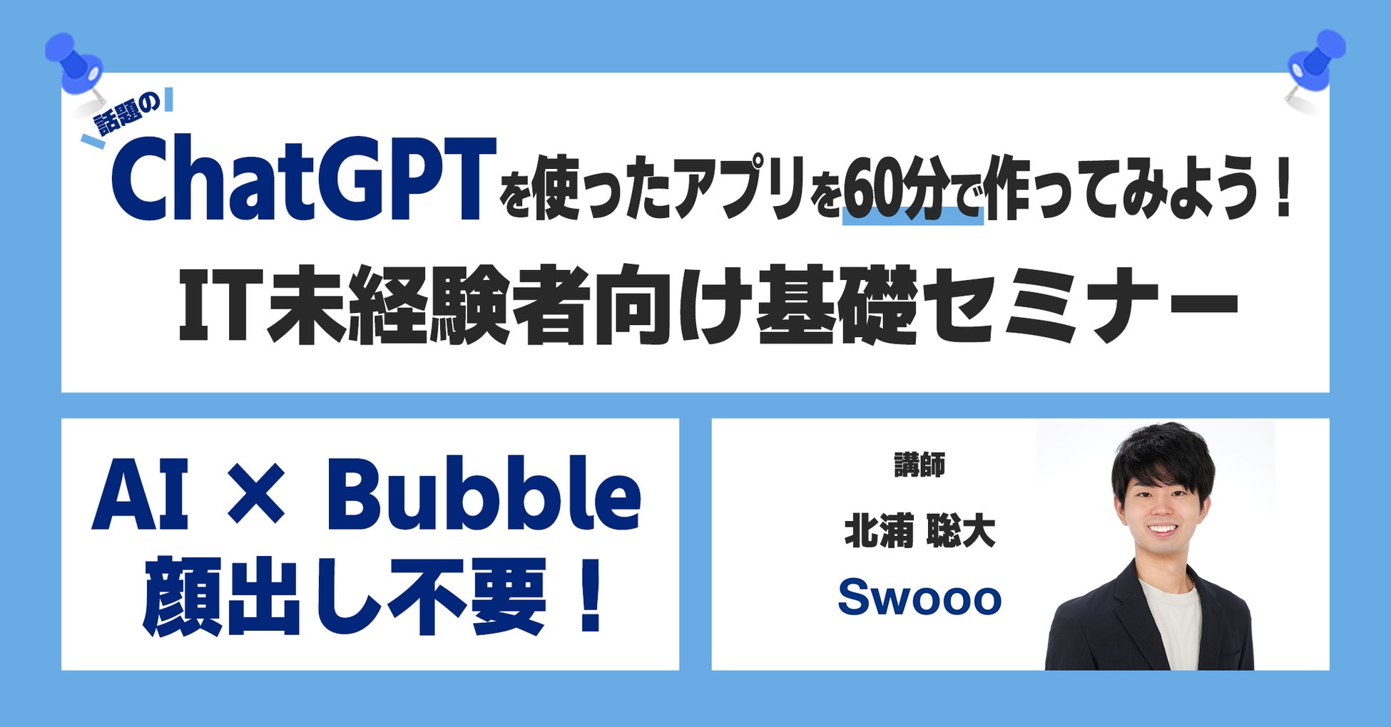 【50名限定】IT未経験者大歓迎!ChatGPT×BubbleでAIアプリを爆速で開発しよう!【3/18(土)開催】