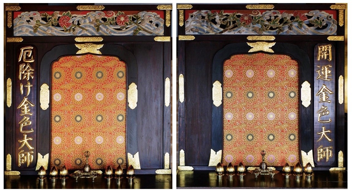 黄金に輝く「厄除け大師様」と「開運大師様」を同時にまつっているのは日本で唯一当寺だけです。