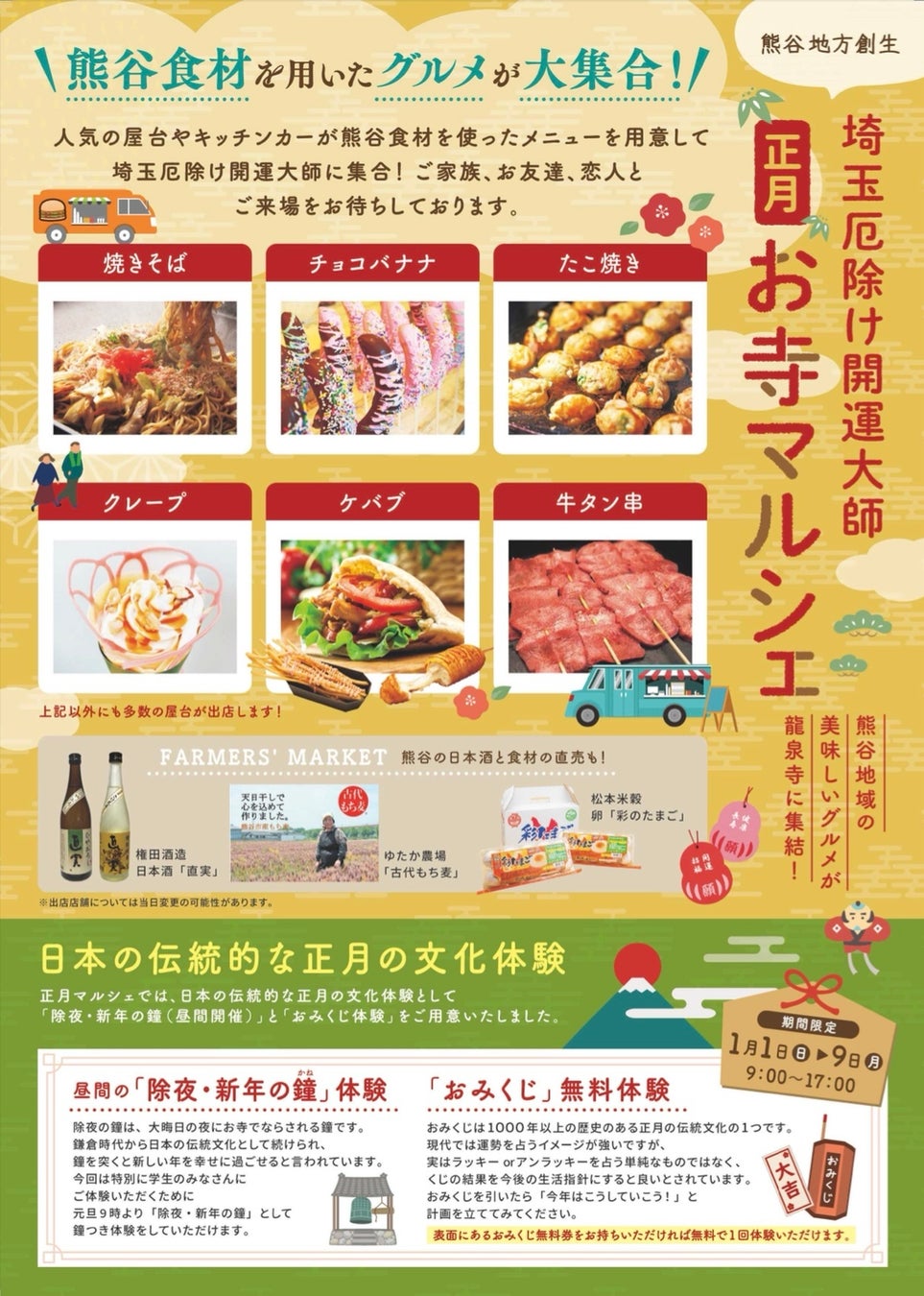 日本三大厄除け開運大師の一つとされる埼玉厄除け開運大師・龍泉寺(埼玉県・熊谷市)において、令和5年(2023年)1月1日~9日 9:00~17:00で初詣大祈願祭・だるま市が開催されます。