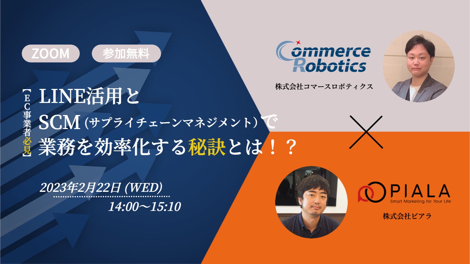 2023年2月22日(水)に株式会社コマースロボティクスと株式会社ピアラがLINE活用とSCM(サプライチェーンマネジメント)で業務を効率化するEC事業者向け無料WEBセミナーを開催