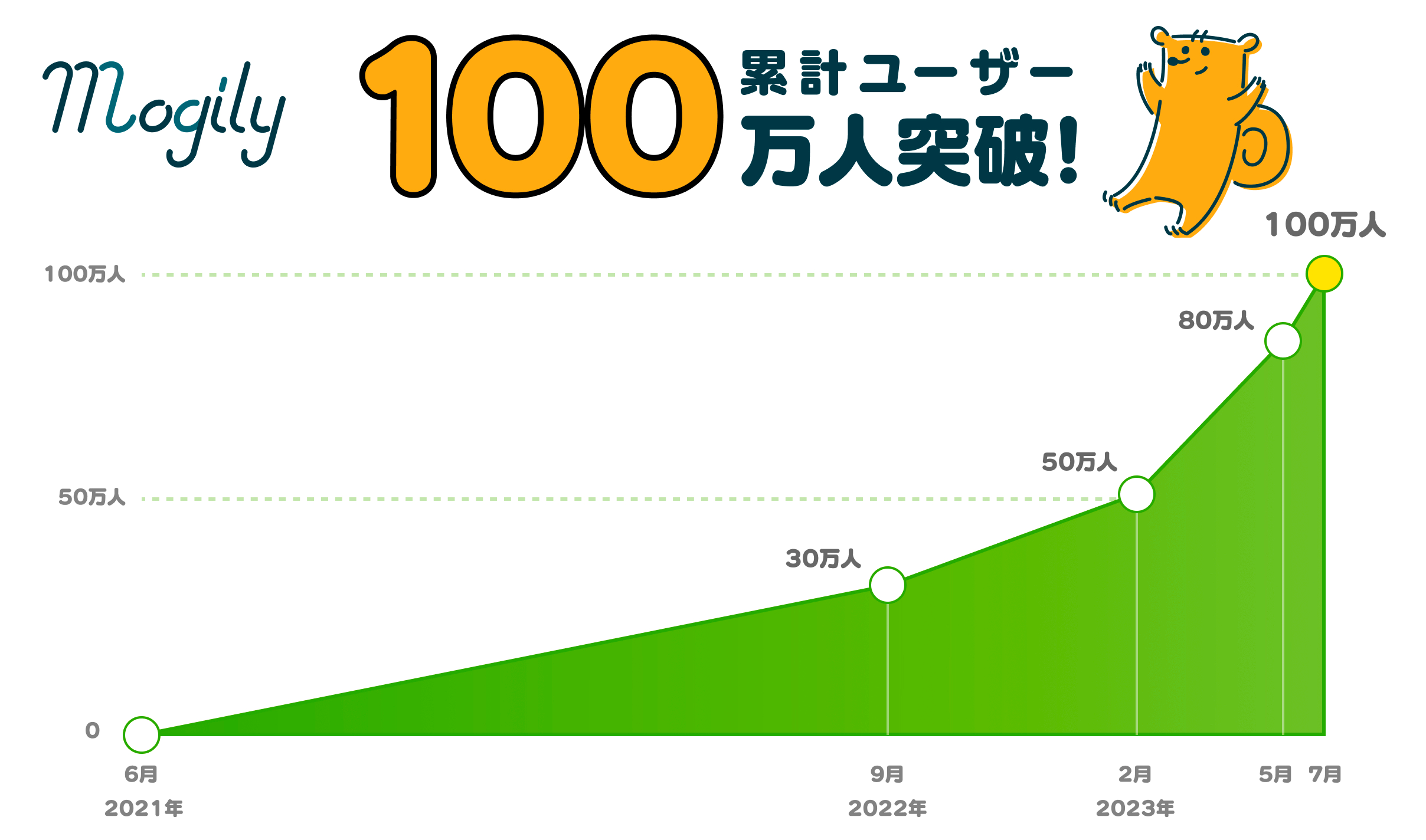 『mogily』は2021年6月のサービス開始から2023年6月で2年が経ちました。サービス開始当初は緊急事態宣言中でしたが、2022年5月の緊急事態宣言終了後からリアルイベントが復活したことをきっかけに導入数が増加、2022年年末以降は音楽フェスや全国ツアー、アミューズメント施設などの大規模イベントで導入いただけたことでユニークユーザー数が昨年比が831%増加となり、2023年7月22日にユニークユーザー数100万人を突破することができました。