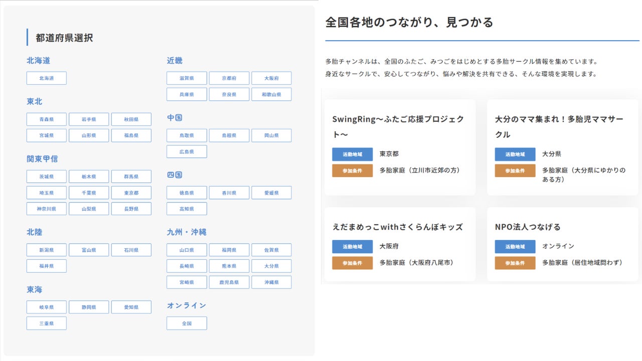 2.全国各地のつながり、見つかる「全国の多胎支援情報」