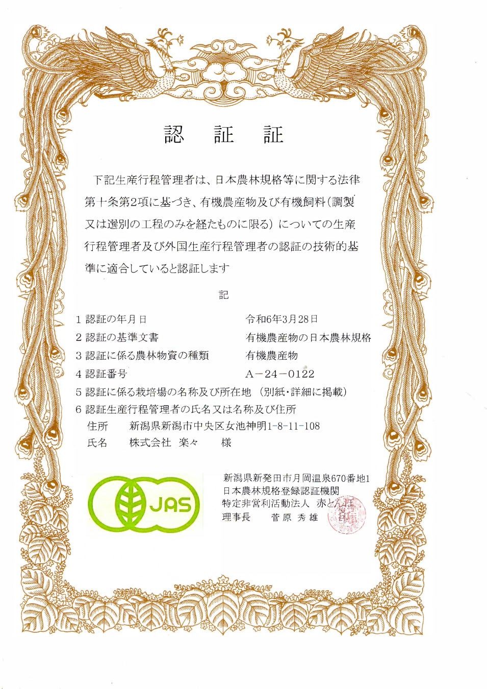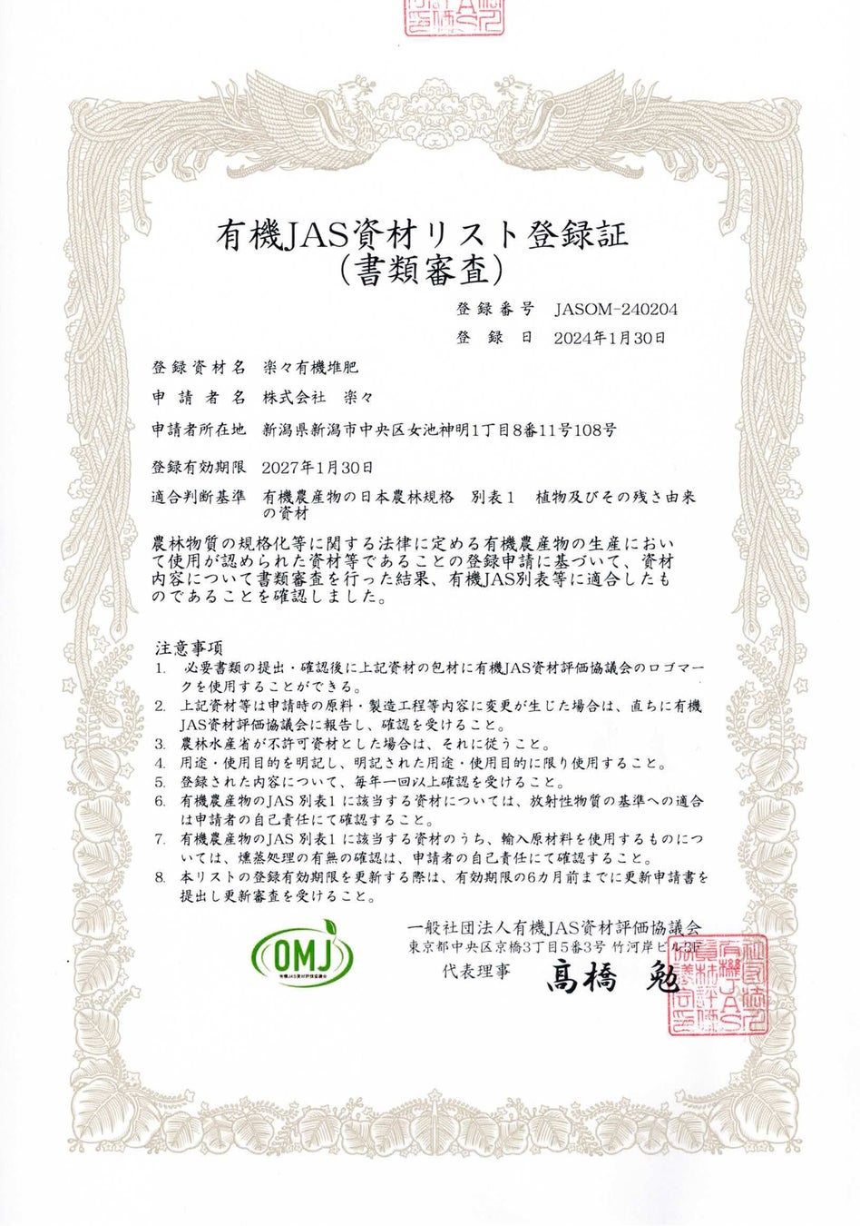 株式会社楽々(本社:新潟市)は、循環型有機農業でネイチャーポジティブを実証するマッシュファメンタシステムで生産した「楽々きのこ(ひらたけ・たもぎたけ他)(新潟県産)」の有機JAS認証を取得しました