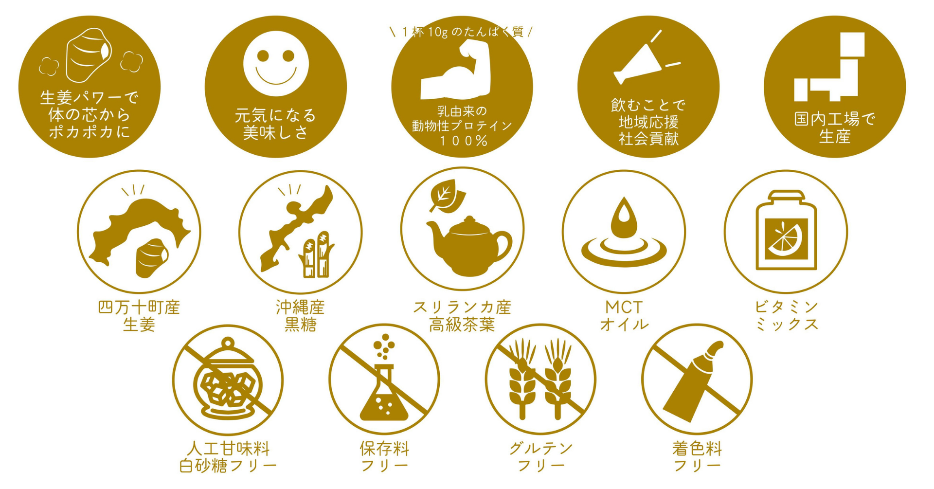 第一弾では高知県四万十町の「土佐一生姜」を使った体の芯から温まる身体にも社会にあたたかいプロテインをリリースし、取り組みを全国に広めることを目指して他エリアでの開発を進めています。