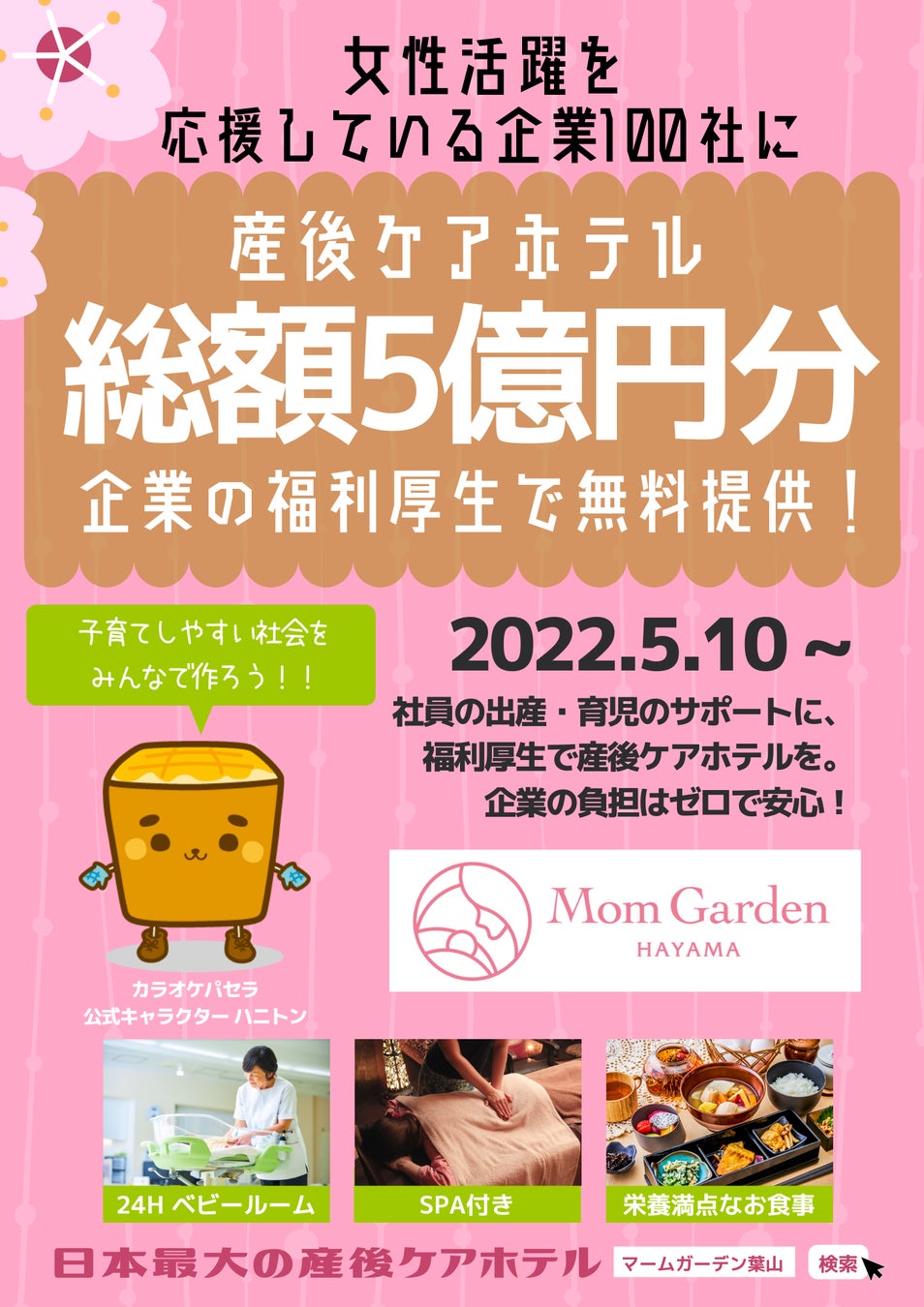 ■企業100社に100泊ずつ、産後ケアホテルを無料提供!参画企業を、業種・企業規模問わず募集!