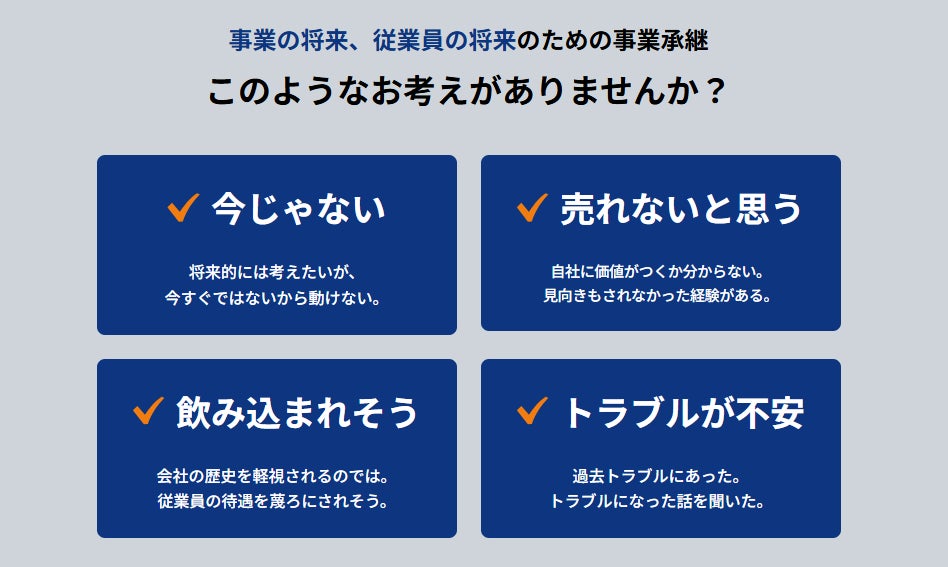 といった4つの懸念が、経営者が適切なタイミングで継承を検討ができない理由となり、結果的に判断が手遅れになってしまうケースが発生していると考えられます。
