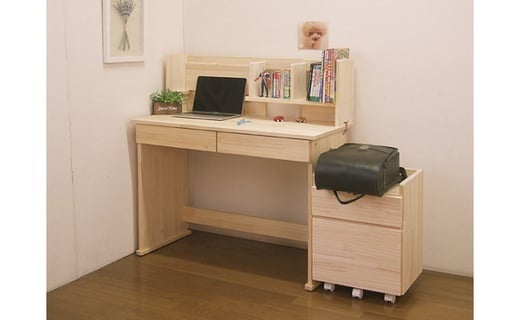 ・第2位 天然木パイン材デスク(学習机)「エル」3点セット