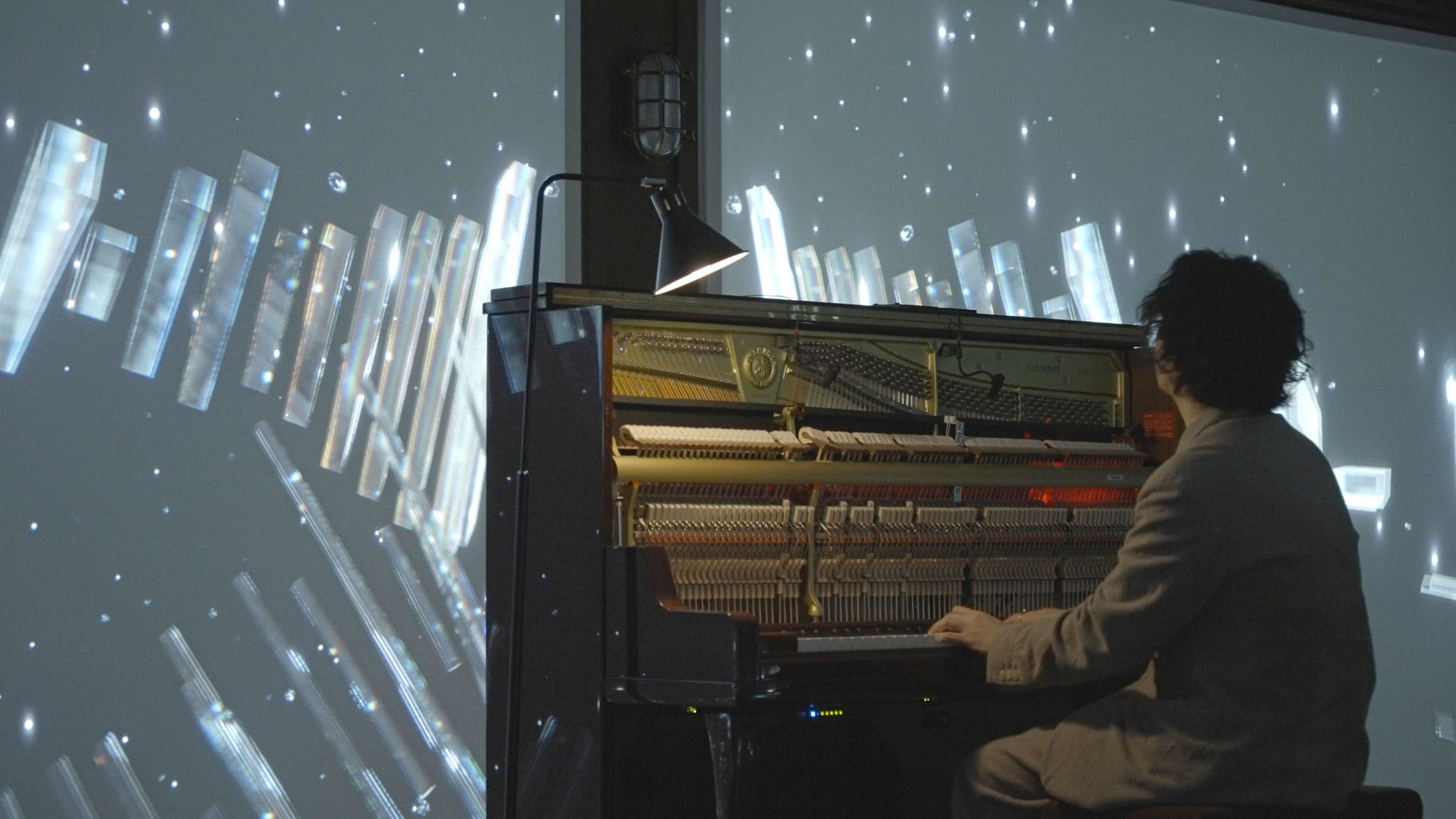 元々は、江﨑さんの演奏会のみの予定でしたが、打ち合わせを重ねるうちに、我々とコラボしたおもしろい取り組みができないかということで、この企画に至りました。今回利用した会場が3層構造になっていることから、水が蒸発し、雲となり雨となって還る、循環される様子を発想。各フロアの演出を完成させながら、別のフロアにその音楽の情報を伝達し、連動させるという技術的な実装が難しいポイントでした。江﨑さんの音楽に観客が変化を加え、新たな音楽として創り上げる、新しい演奏会の形を創ることができたと思います。