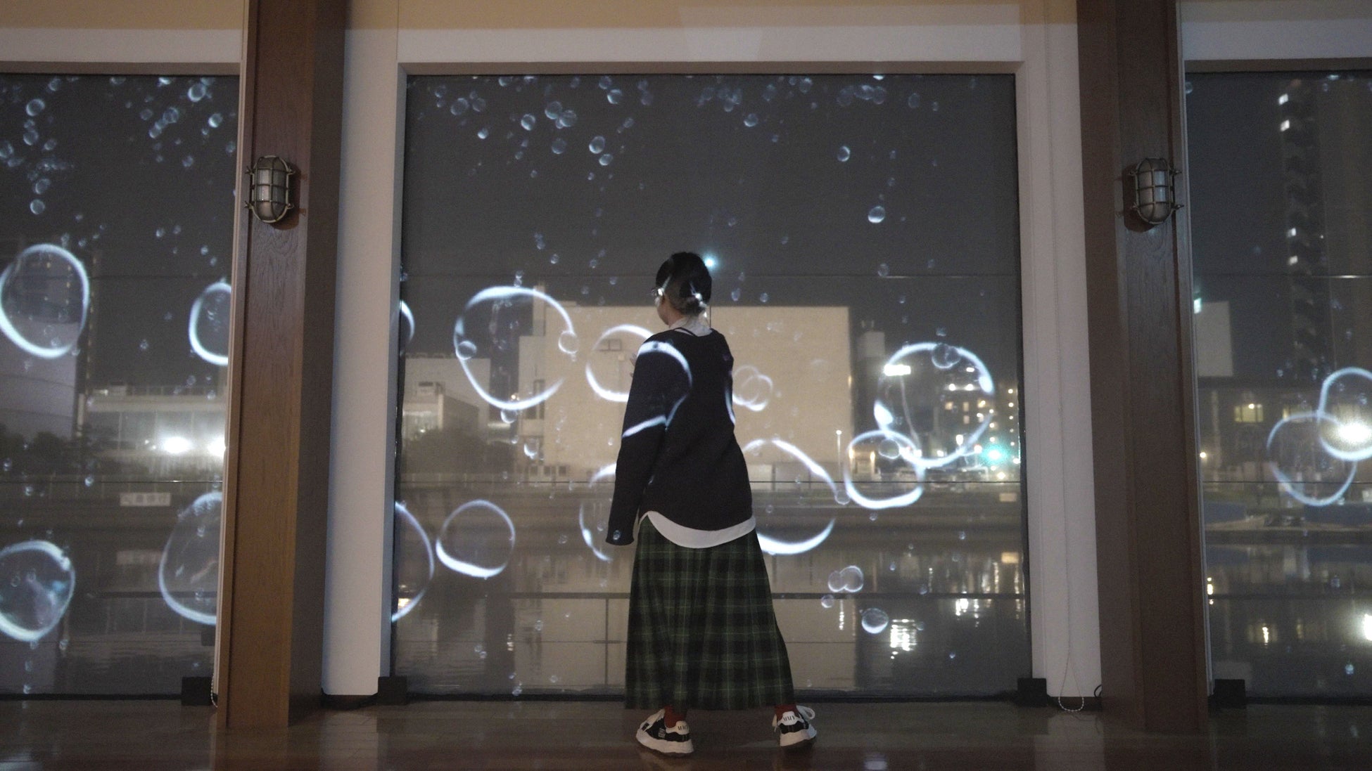 WOWさんからお声がけいただき、映像と音色に変化を加えるインタラクティブな体験を企画・実装しました。アーティストの音楽に観客が変化を加え、別の音楽として創り上げるという「泡」を軸とした表現の開発を行いました。音と完全に同期すること、インタラクションが心地よいこと、表現としての美しさのバランスをとりながら実装を進めることに苦労しましたが、ずっと見ていられる作品にできたと思います。