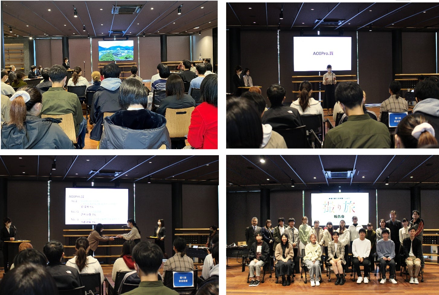 旅と学びの協議会(事務局:ANAホールディングス株式会社)会員である株式会社AOI Pro.(本社:東京都中央区、代表取締役社長:潮田 一、AOI Pro.)が立ち上げた当会発の学生向けプロジェクト「地域の魅力を映像にしよう!~撮り旅~」を松山大学と実施、11月30日に成果報告会を行いました。