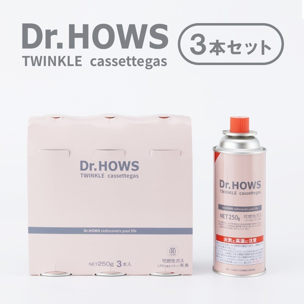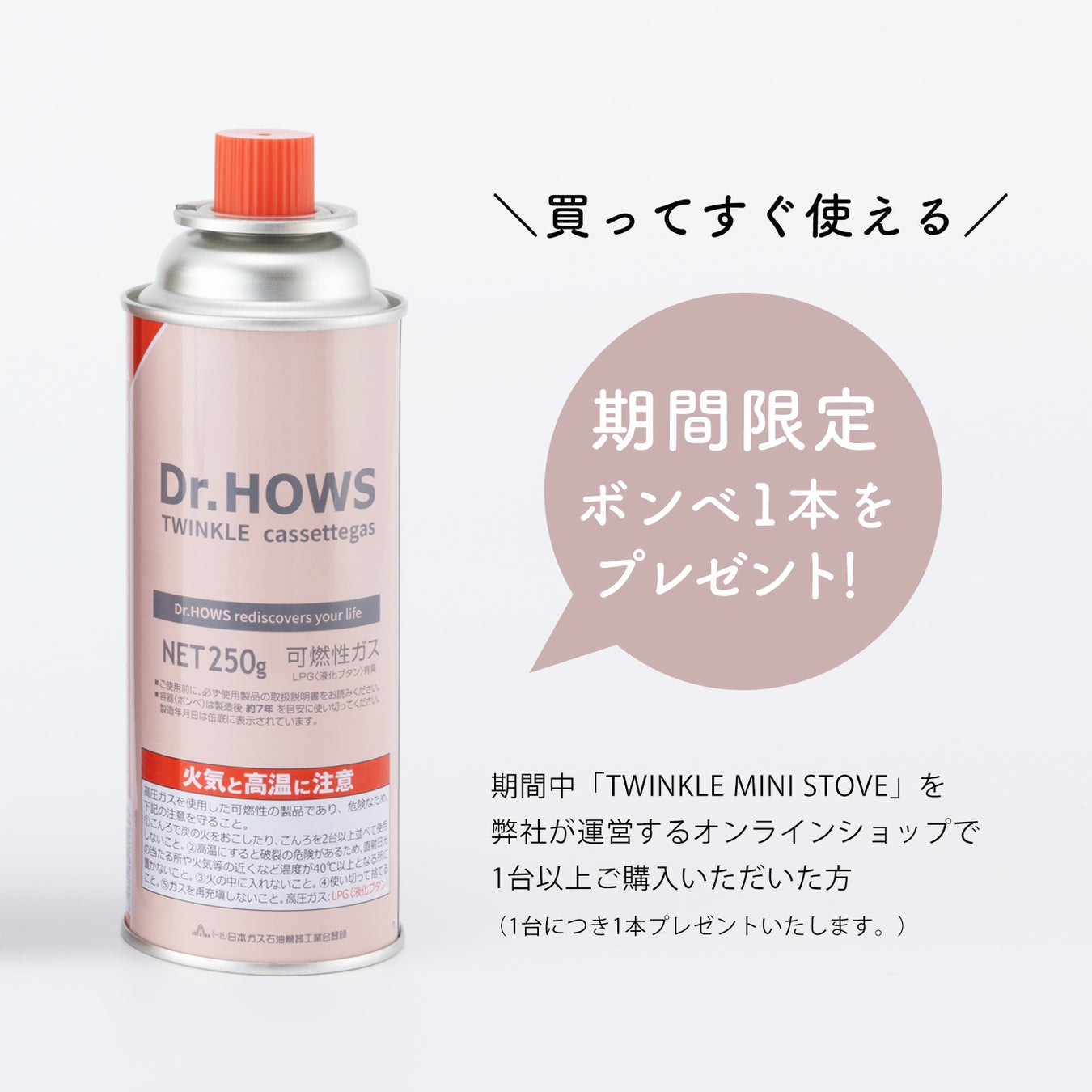 「Dr.HOWS TWINKLE MINI STOVE」と併せて利用いただける「TWINKLE CASSETTEGAS トゥインクルカセットガス 250g × 3本セット」も現在発売中です。