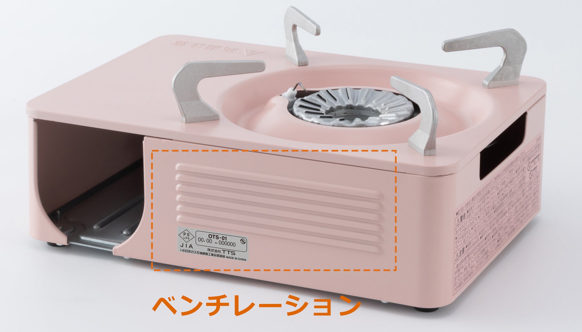 過熱時に発生する熱をカセットコンロの背面にあるベンチレーション(換気扇)により安定して熱を排出します。