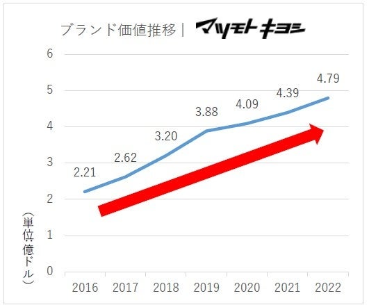 当ランキングにおいて、「マツモトキヨシ」のブランド価値は、昨年の4.39億ドルから4.79億ドルと大きく拡大し、7年連続のランクインとなりました。また、前年度からのブランド価値成長率は+9%となりました