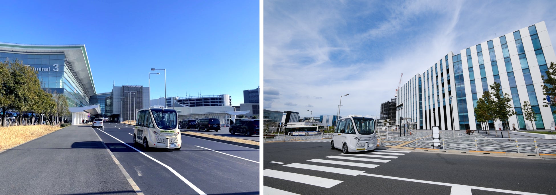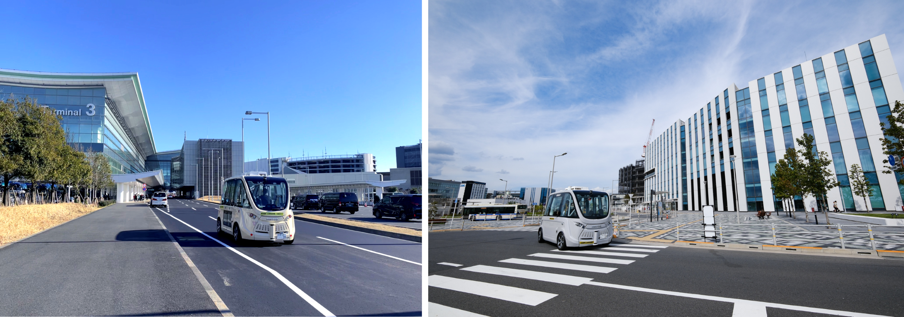 スマートモビリティの取組みの中で、交通弱者への移動手段支援やバスなどのドライバー不足といった社会課題に応えるべく、自動運転バスの実証を推進しています。2020年には、複数企業と協働し、HICity内に国内初となるスマートシティにおける自動運転バスの恒常的導入を実現しました。2021年には、羽田空港第3ターミナル間の公道において、一般の利用者向けに初となる運行実証を実施し、以降、長期実証を含む計5回の実証実験を実施しています。今後も羽田空港地区における自動運転の実装に向けて、取組みを継続する予定です。